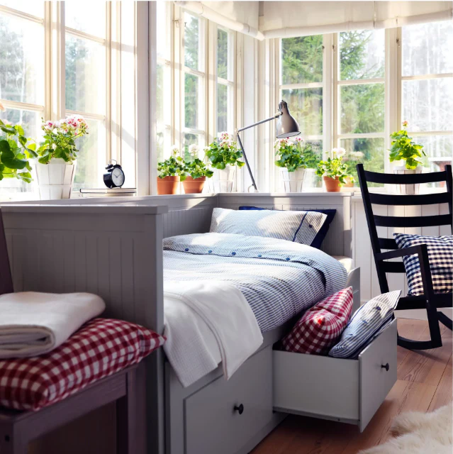 HEMNES Cama día con 3 cajones Gris, 80x200 cm