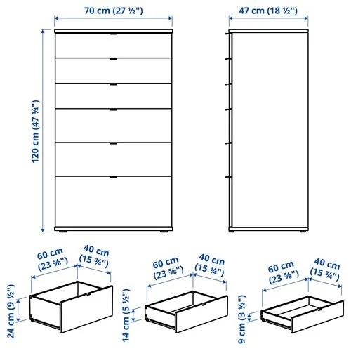 Cómoda VIHALS de 6 cajones de IKEA, color blanco, 70x47x120 cm