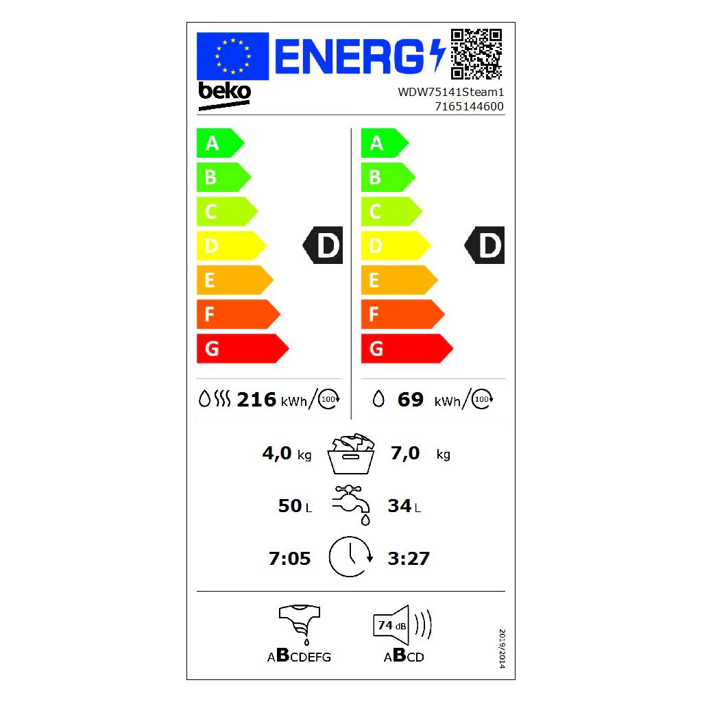 2025 Lavadora-secadora Beko WDW75141 Steam1 con puerta XL, 1400 rpm, con vapor