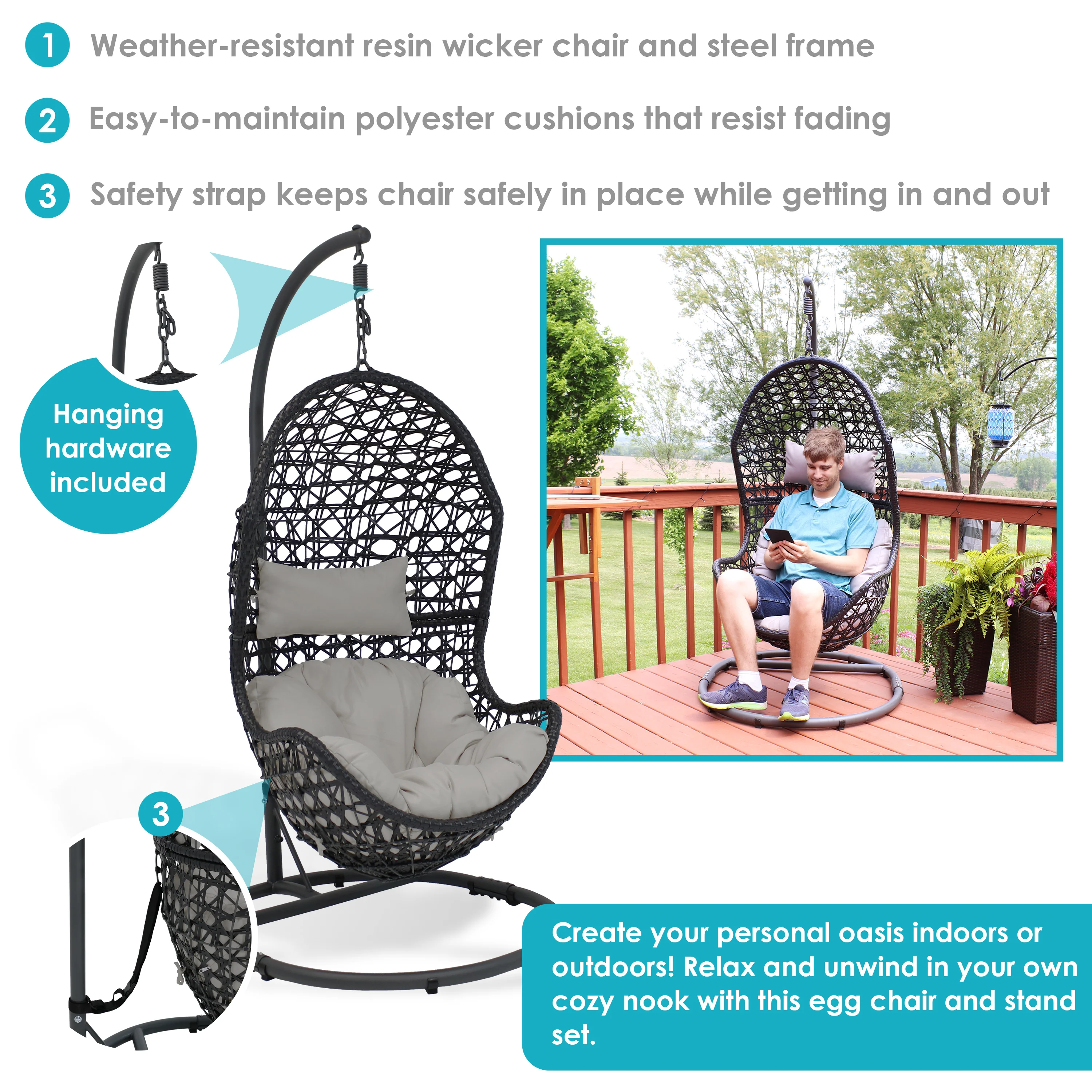 2025 Silla Colgante de Exterior Sunnydaze Julia en Forma de Huevo con Cojines