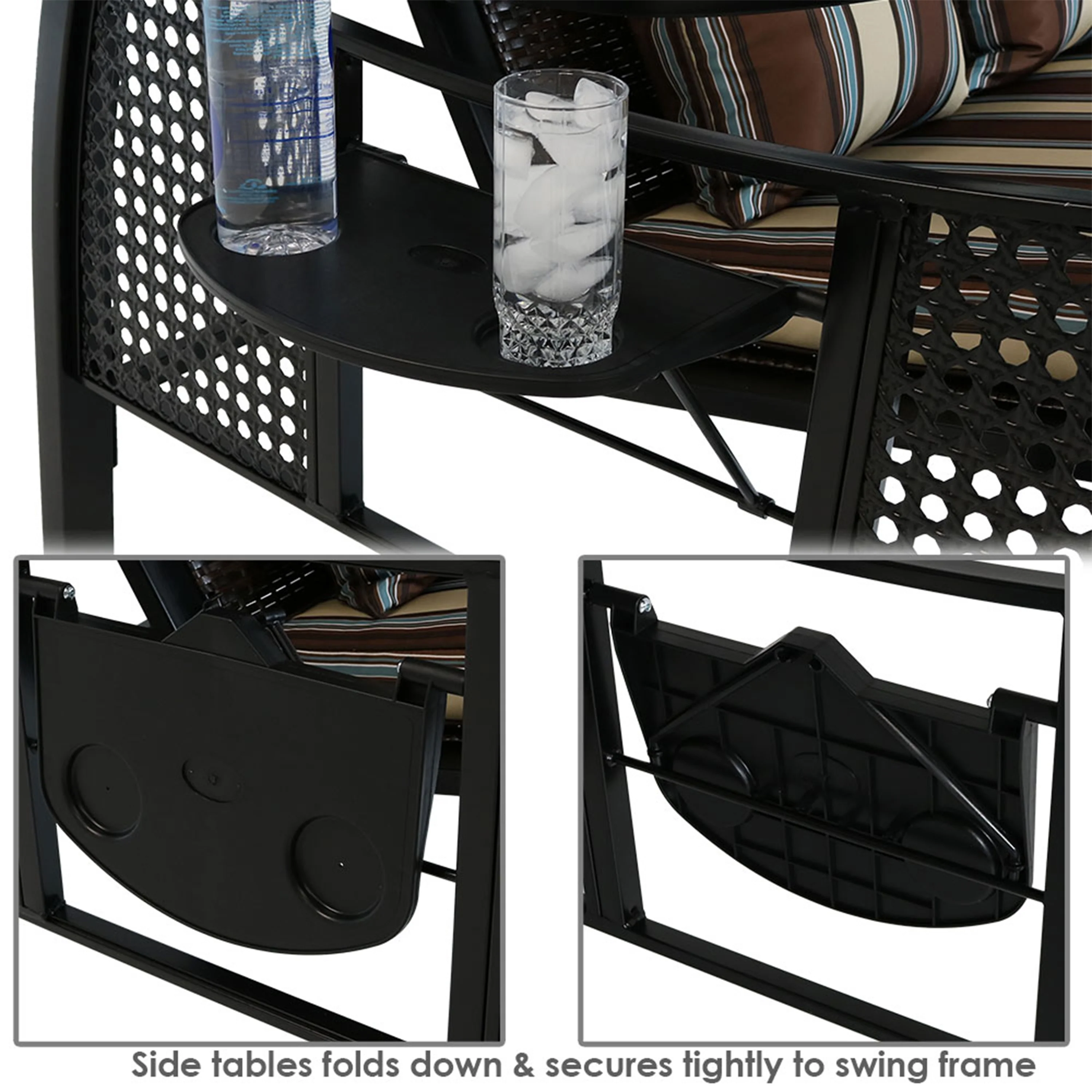 2025 Columpio de Jardín Sunnydaze Deluxe para 3 Personas con Toldo y Mesas Laterales