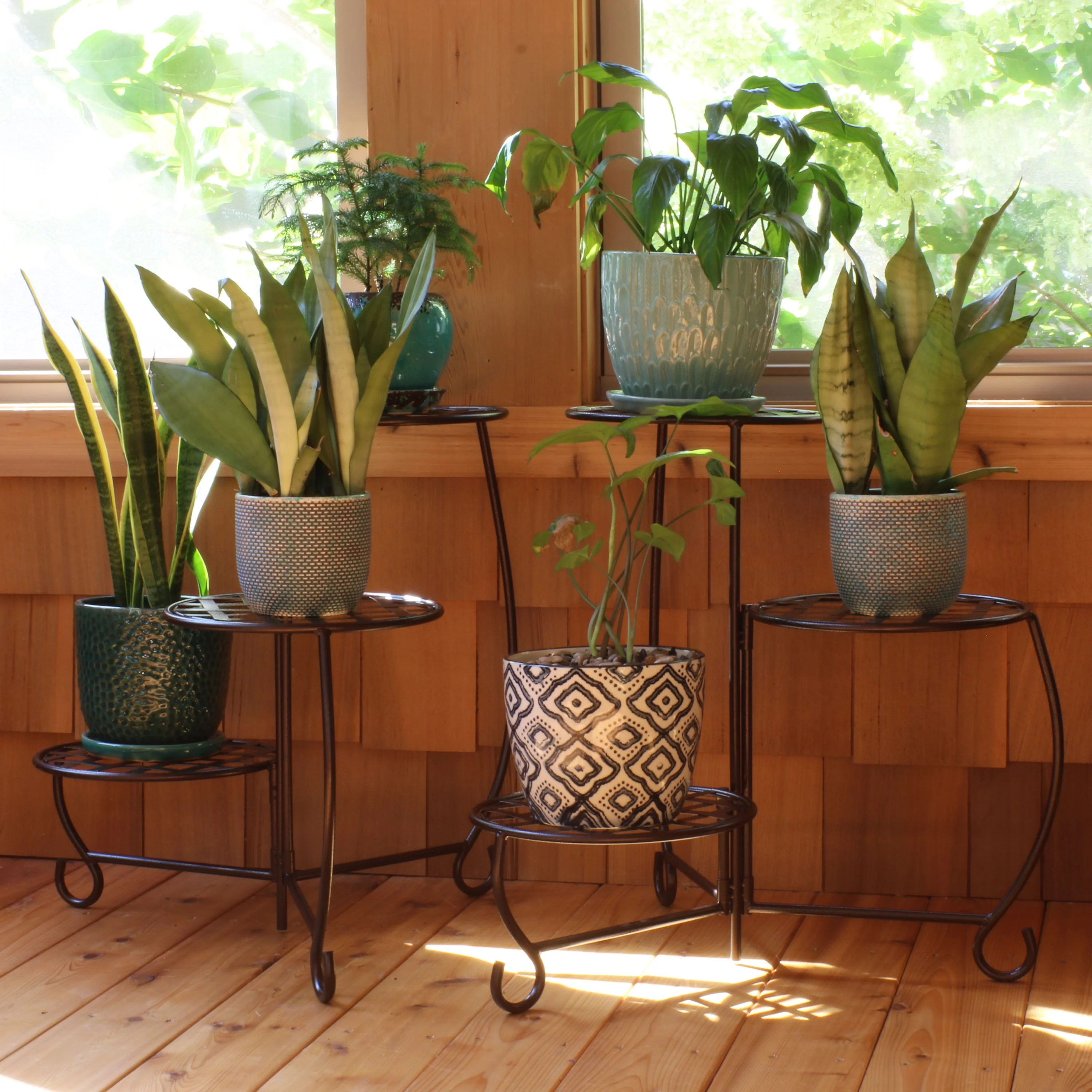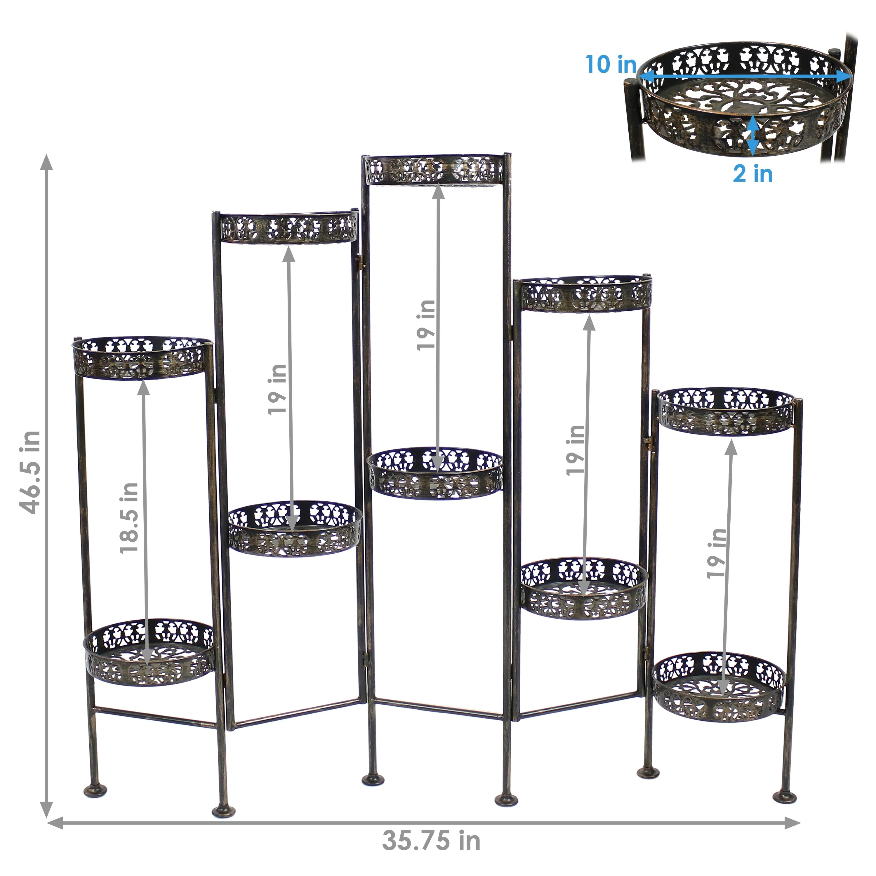 2025 Soporte Plegable para Plantas Sunnydaze de Acero en Bronce con 10 Niveles para Interior y Exterior - Altura 117 cm