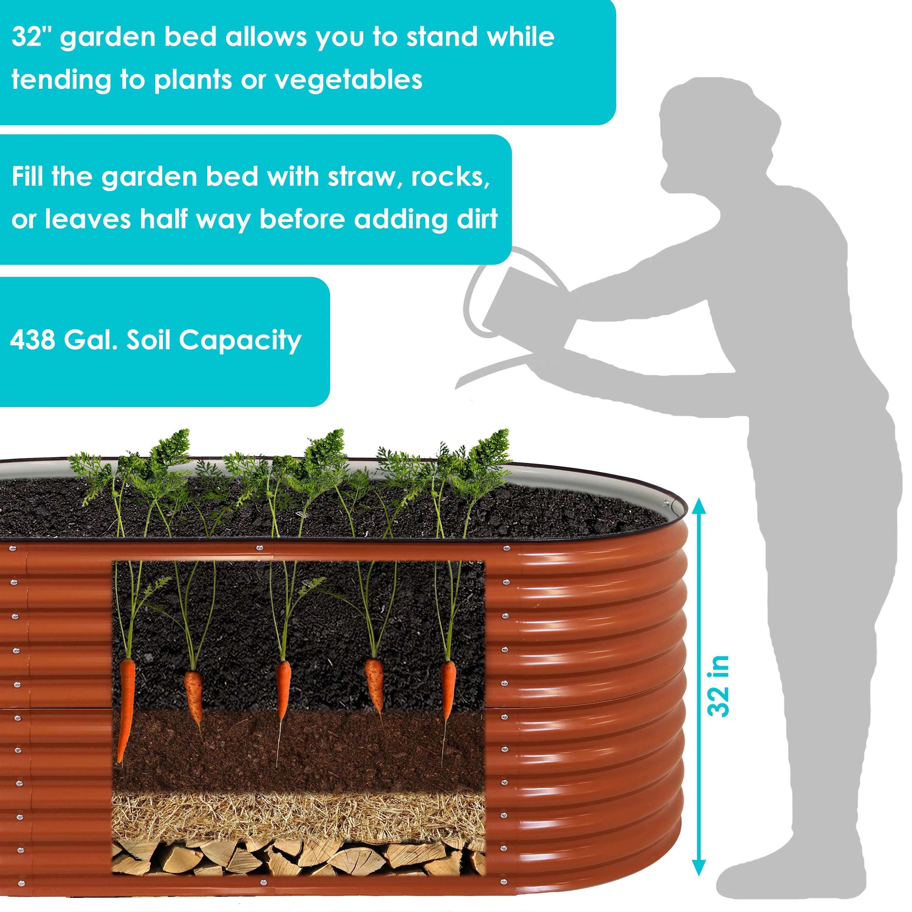 2025 Cama Elevada Redonda para Jardín Sunnydaze de Acero Galvalume - Altura 43,8 cm
