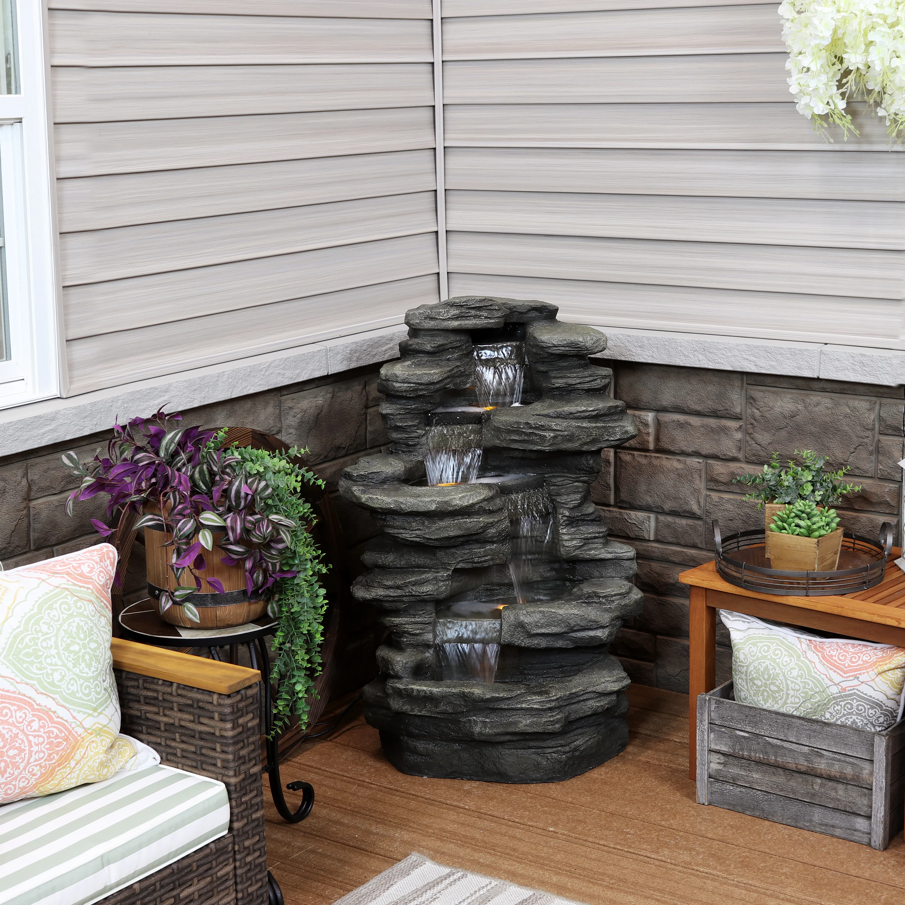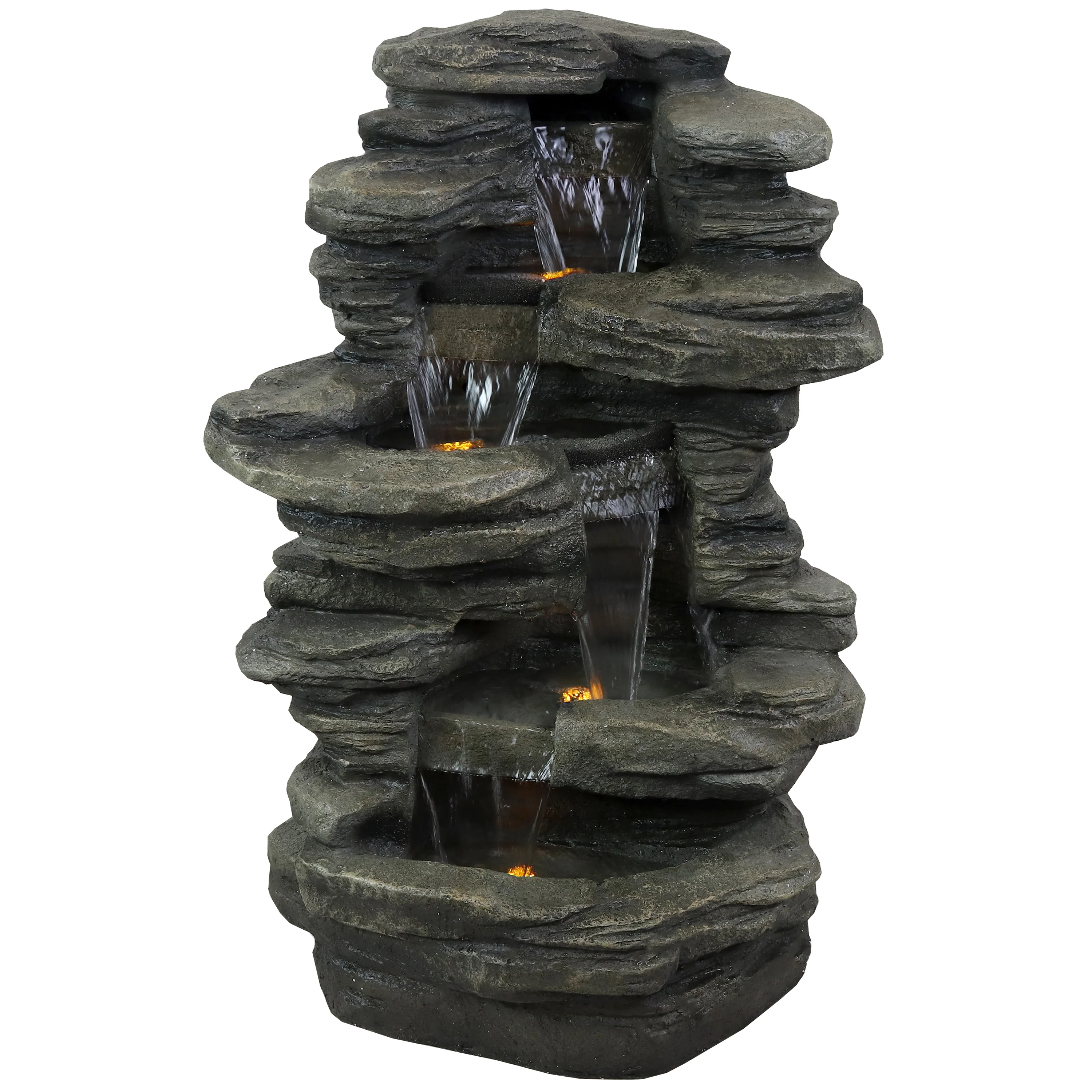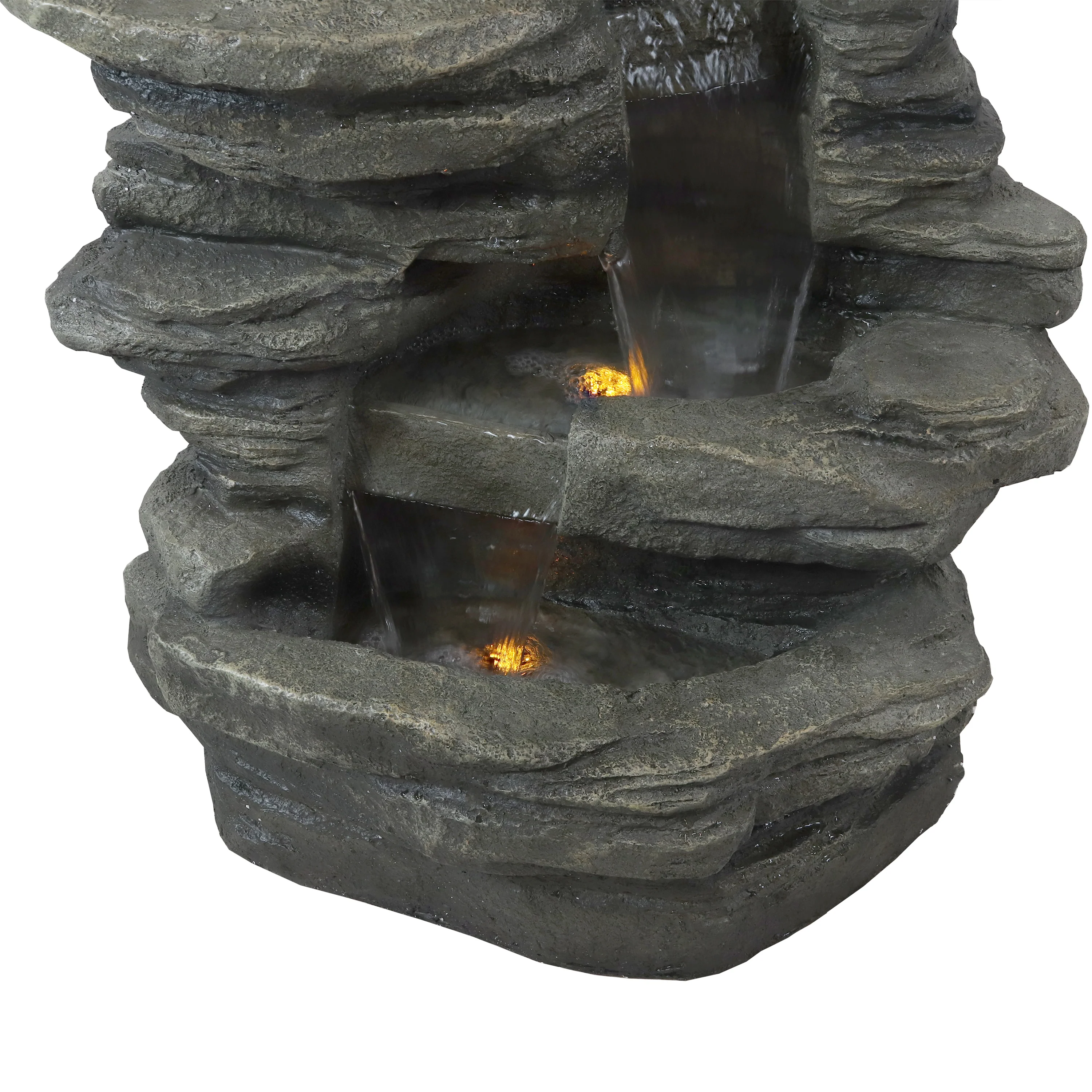2025 Fuente de cascada de roca apilada Sunnydaze para exteriores con luces LED - 38 pulgadas