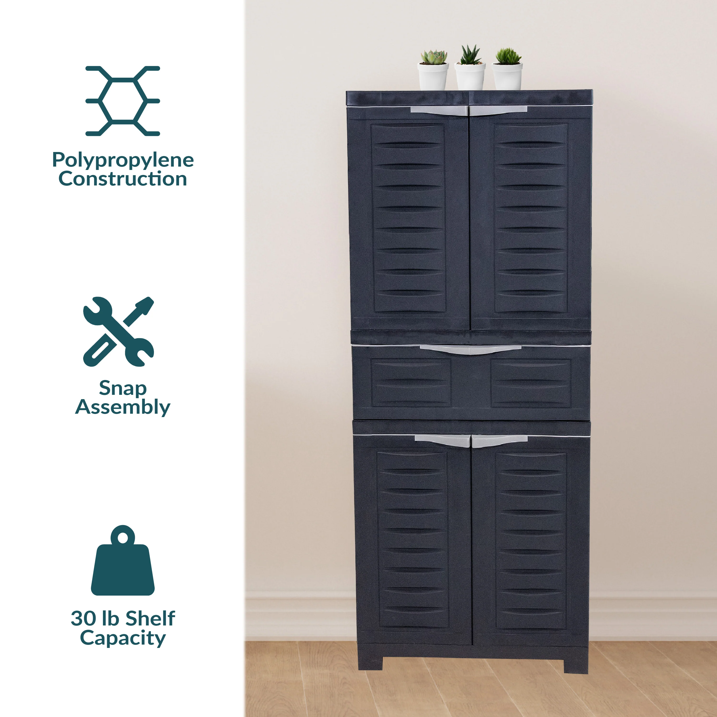 2025 Gabinete de plástico para garaje Sunnydaze con 2 estantes ajustables y 1 cajón