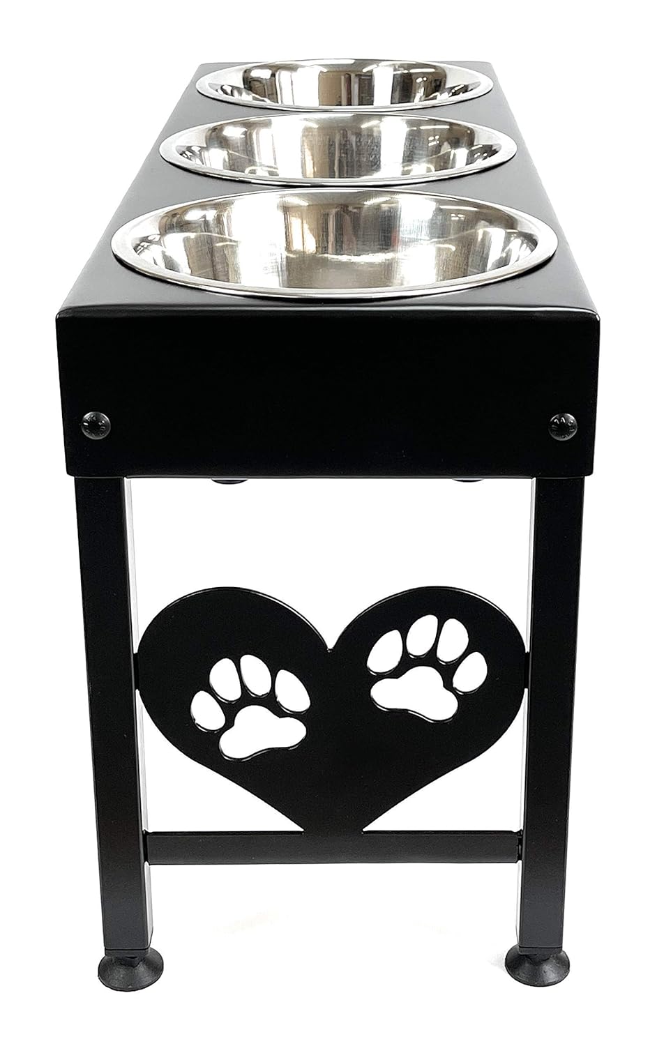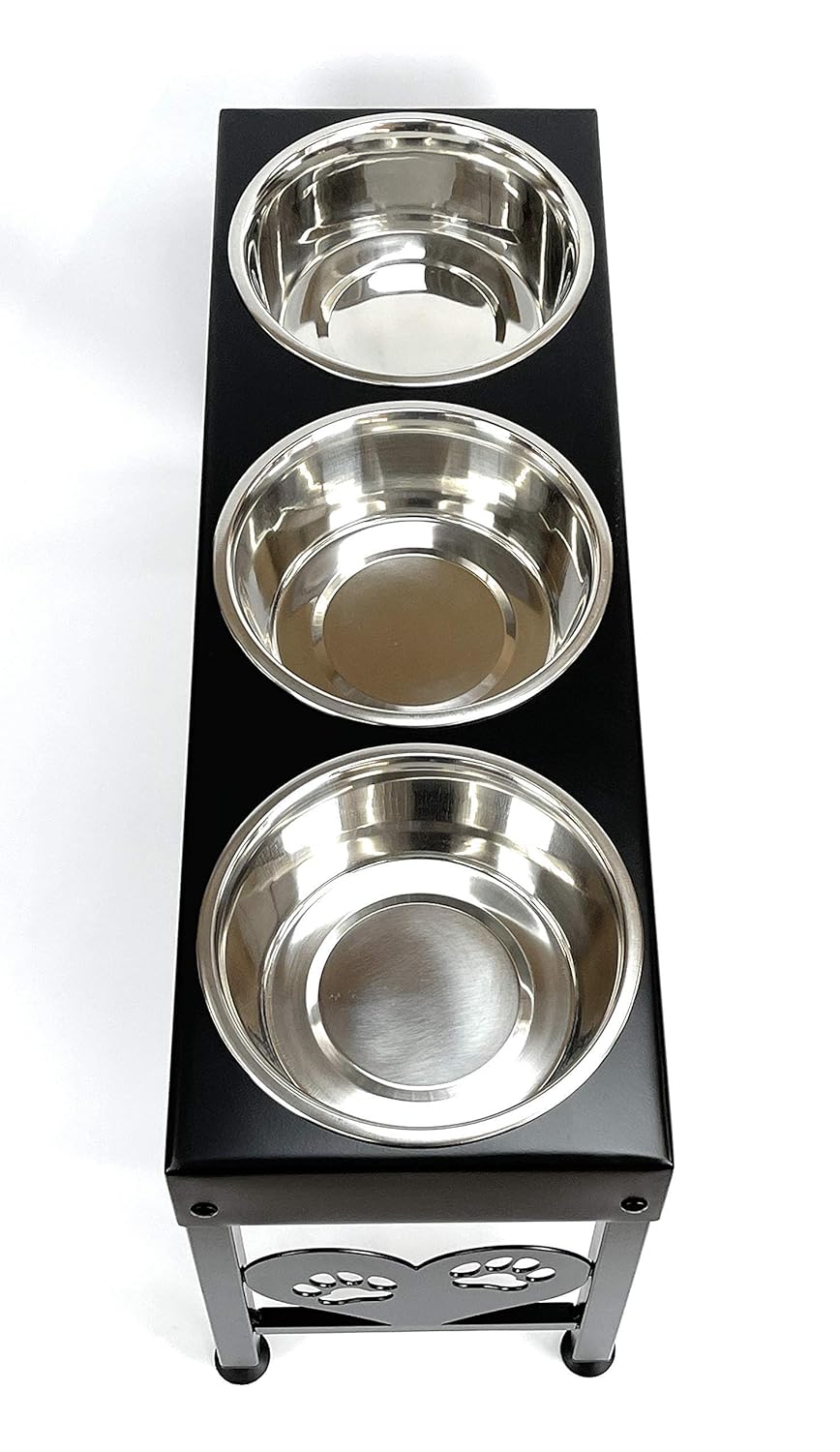 2025 Estación de Alimentación para Mascotas, Soporte Triple con 3 Cuencos de Metal de 3 Cuartos, Altura 16 Pulgadas