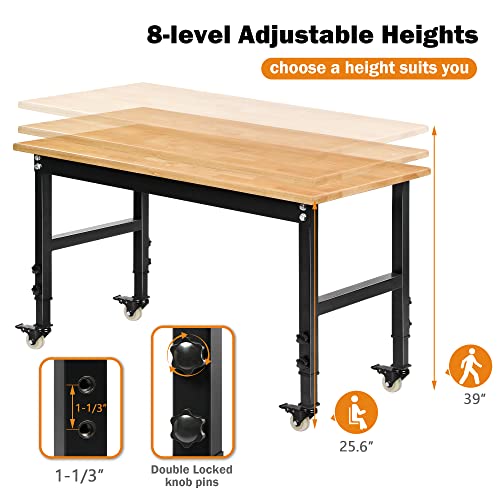 2025 Betterhood Banco de Trabajo Ajustable Robusto 48" con Superficie de Madera Caucho para Garaje
