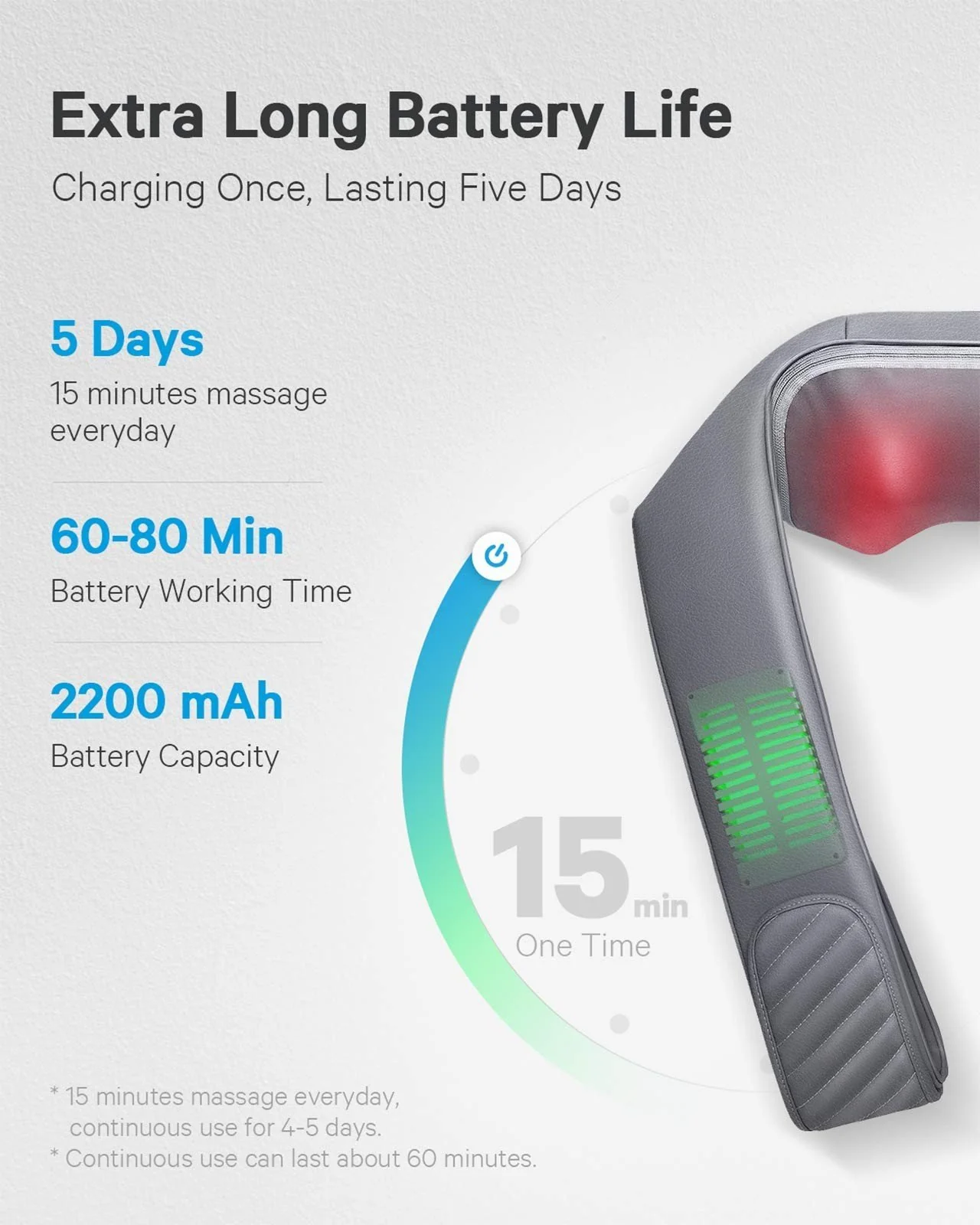 2025 Naipo MGS-N12CS – Masajeador Inalámbrico Shiatsu para Cuello y Hombros