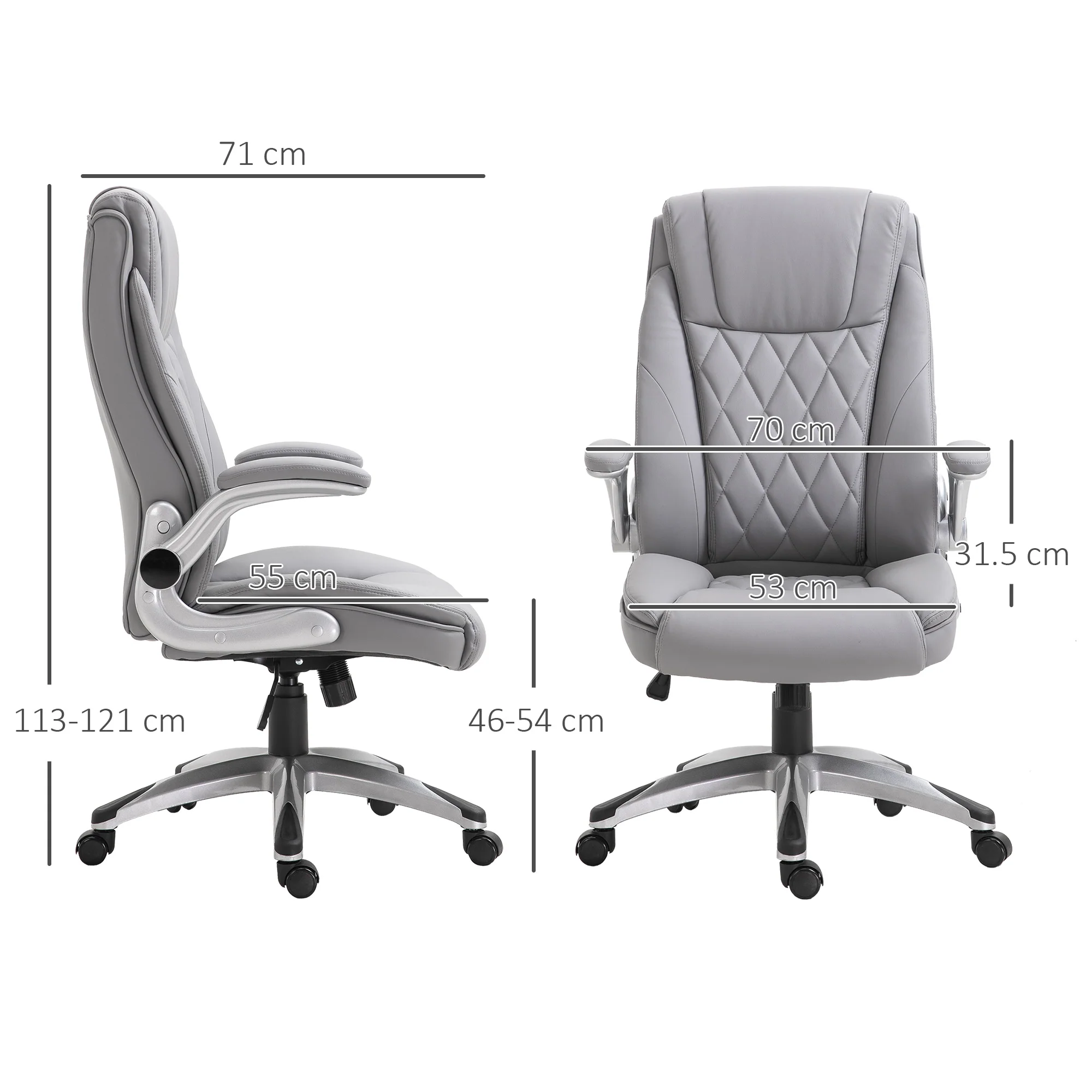 2025 Silla de Oficina de Cuero PU con Reposabrazos Abatibles, Altura Ajustable y Ruedas Giratorias, Gris