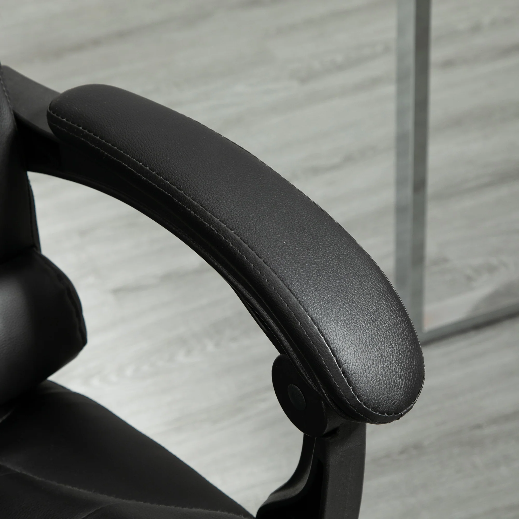 Silla de Oficina Ejecutiva, Sillón de Cuero PU con Respaldo Reclinable y Reposapiés, Negro