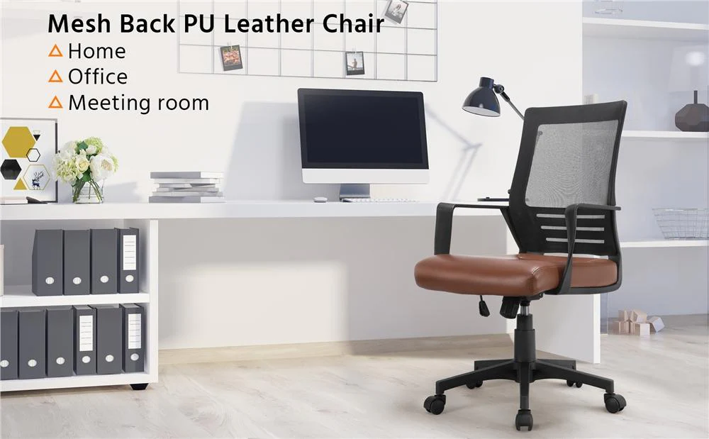 Silla de Oficina Yaheetech de Cuero PU, Respaldo Bajo, Altura Ajustable 41,5-56,5 cm