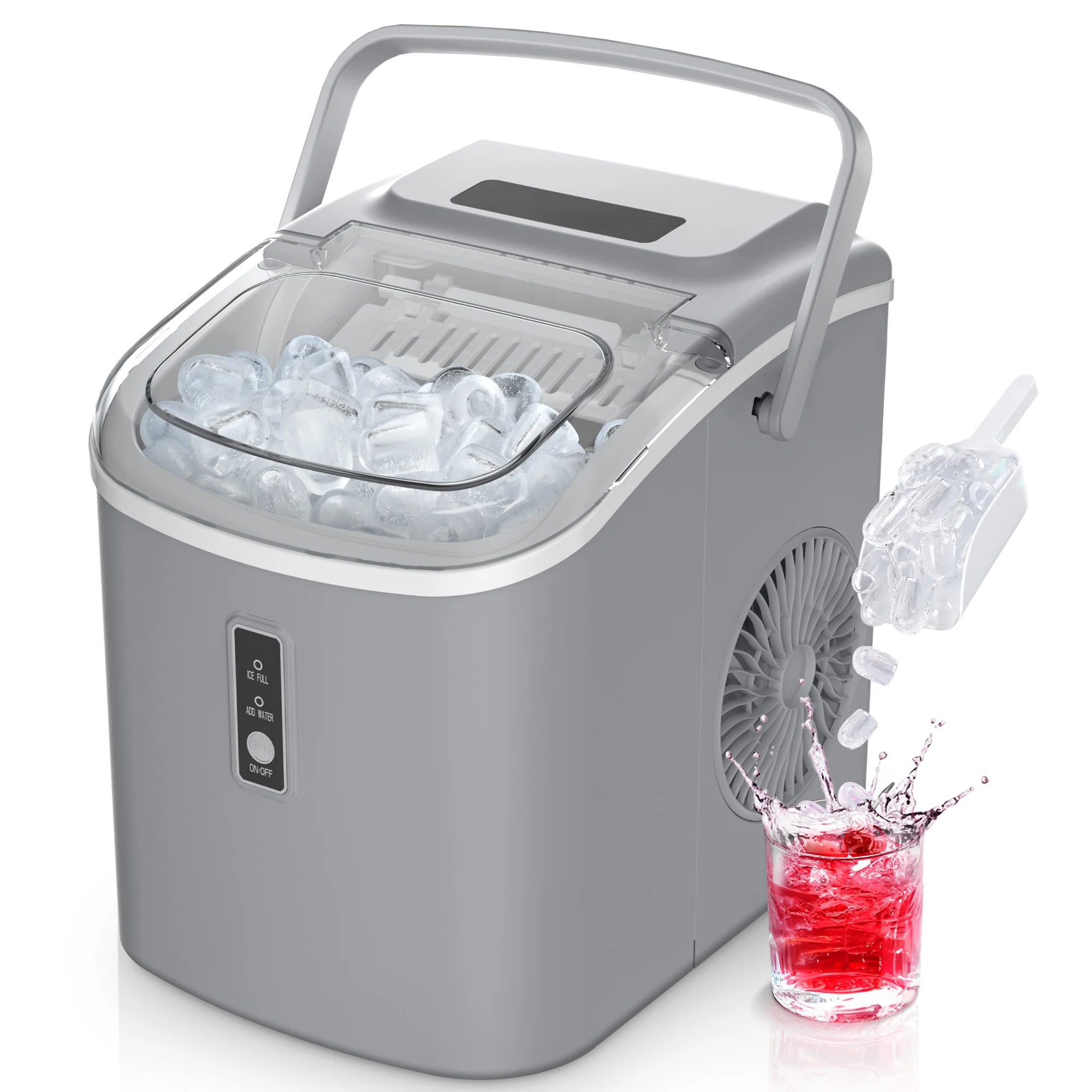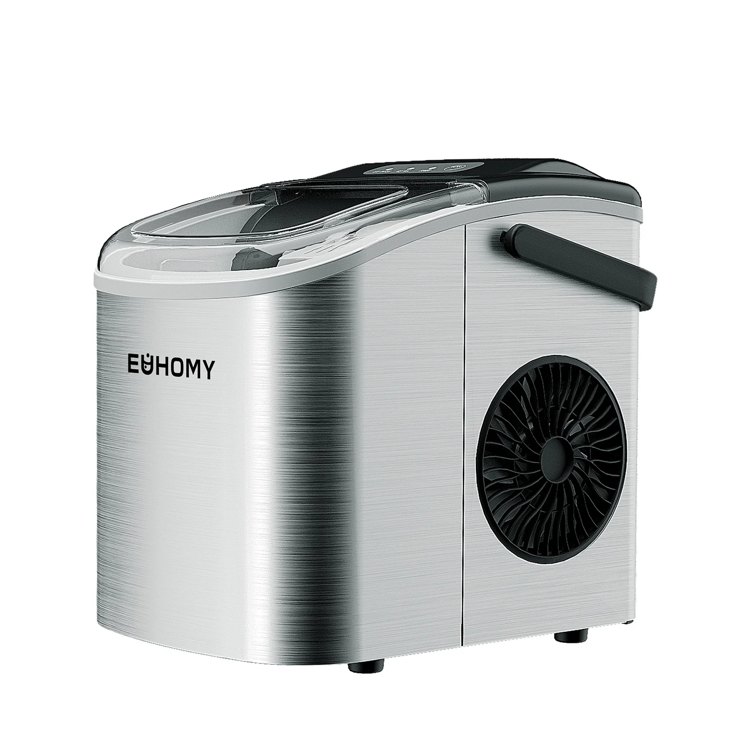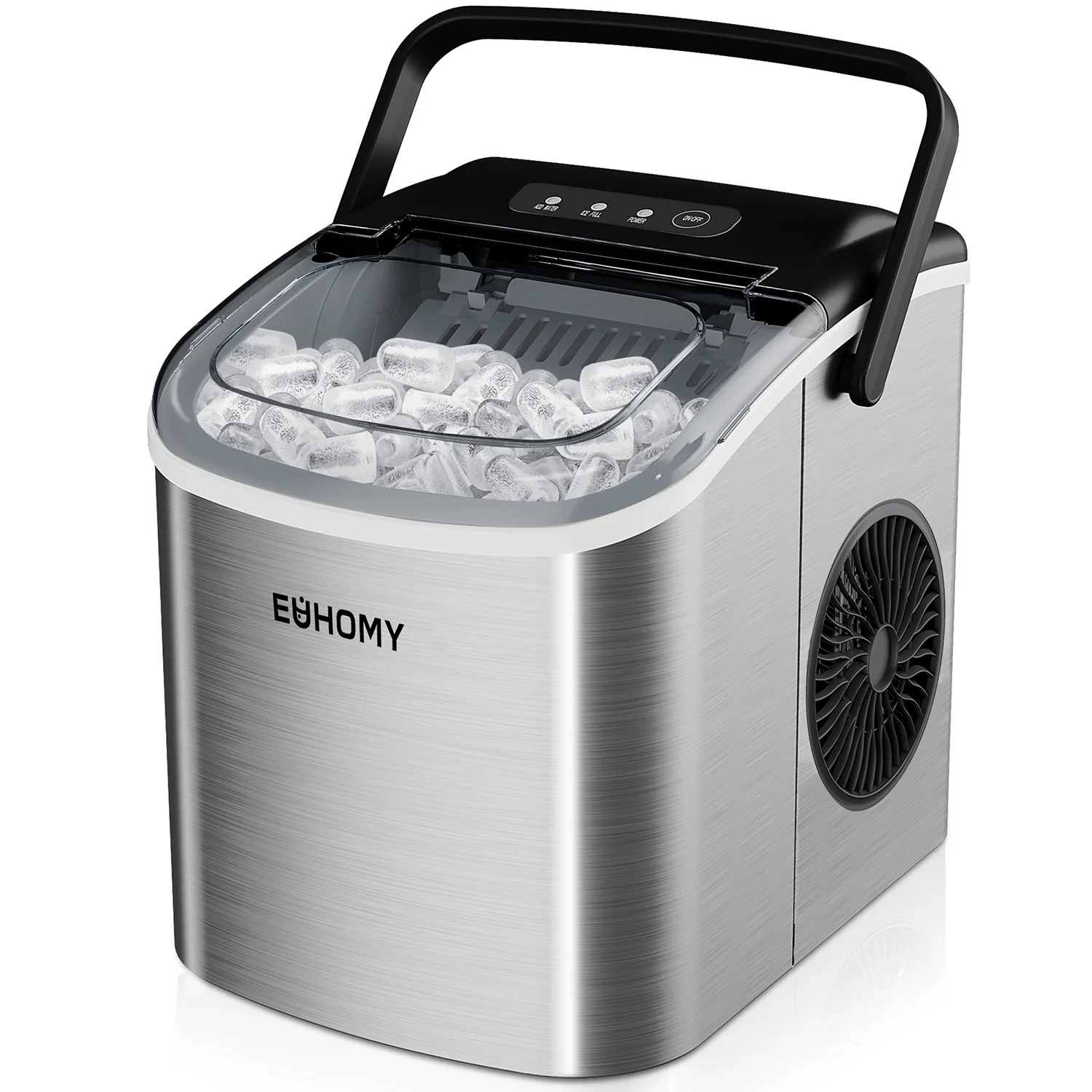 2025 Máquina de hielo de encimera EUHOMY con asa – Producción rápida, autolimpieza, portátil con canasta y pala