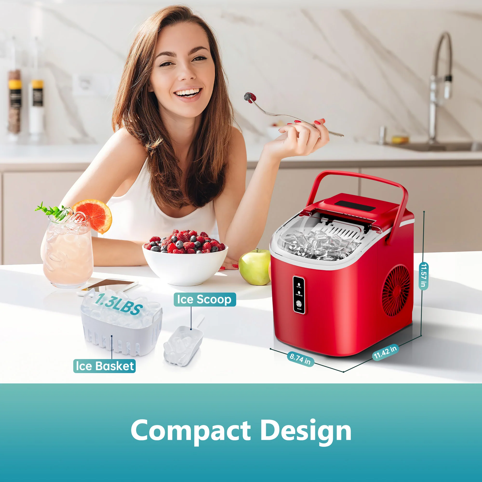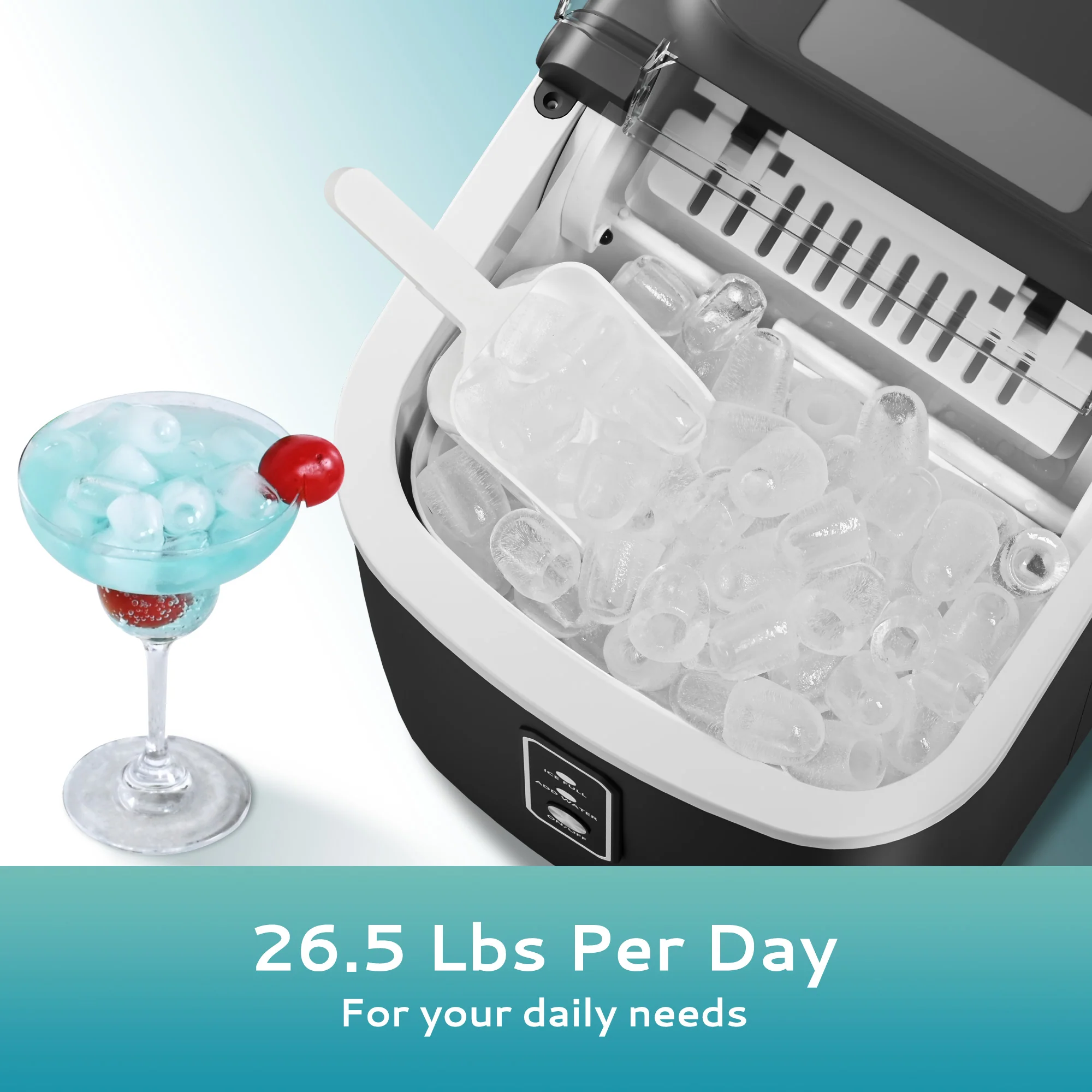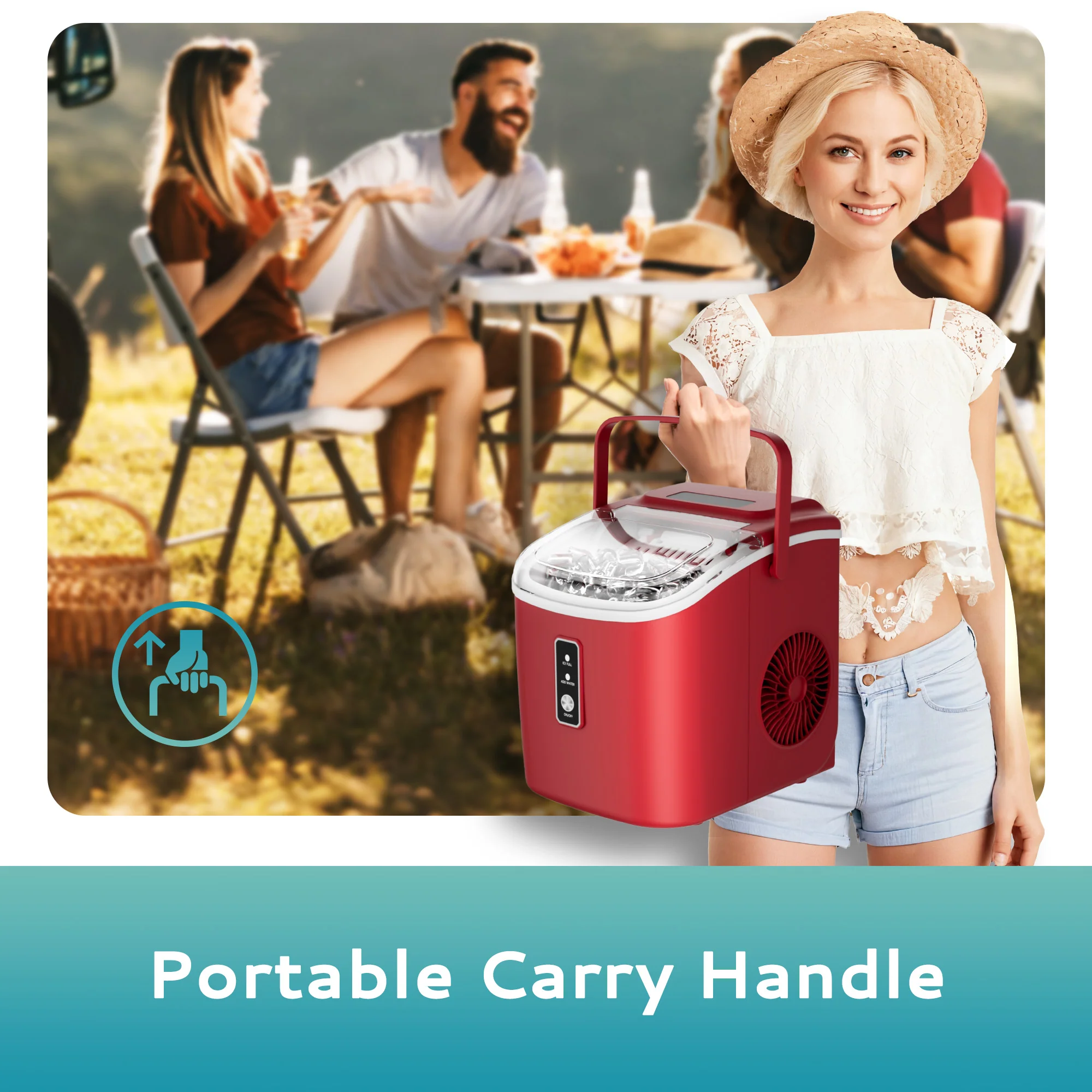 2025 Máquina de hielo de encimera EUHOMY con asa – Producción rápida, autolimpieza, portátil con canasta y pala