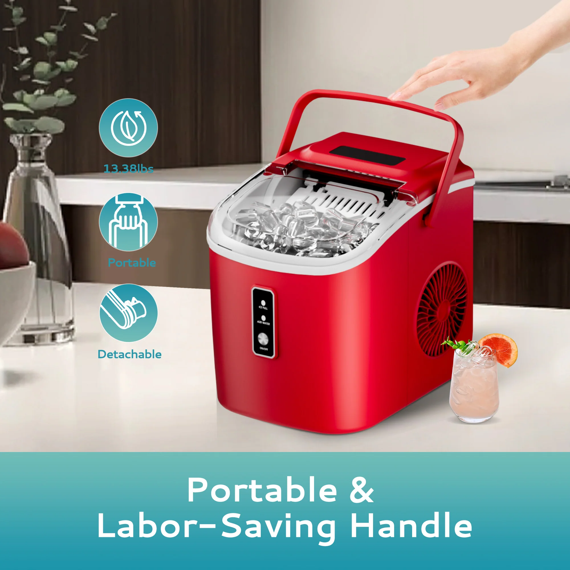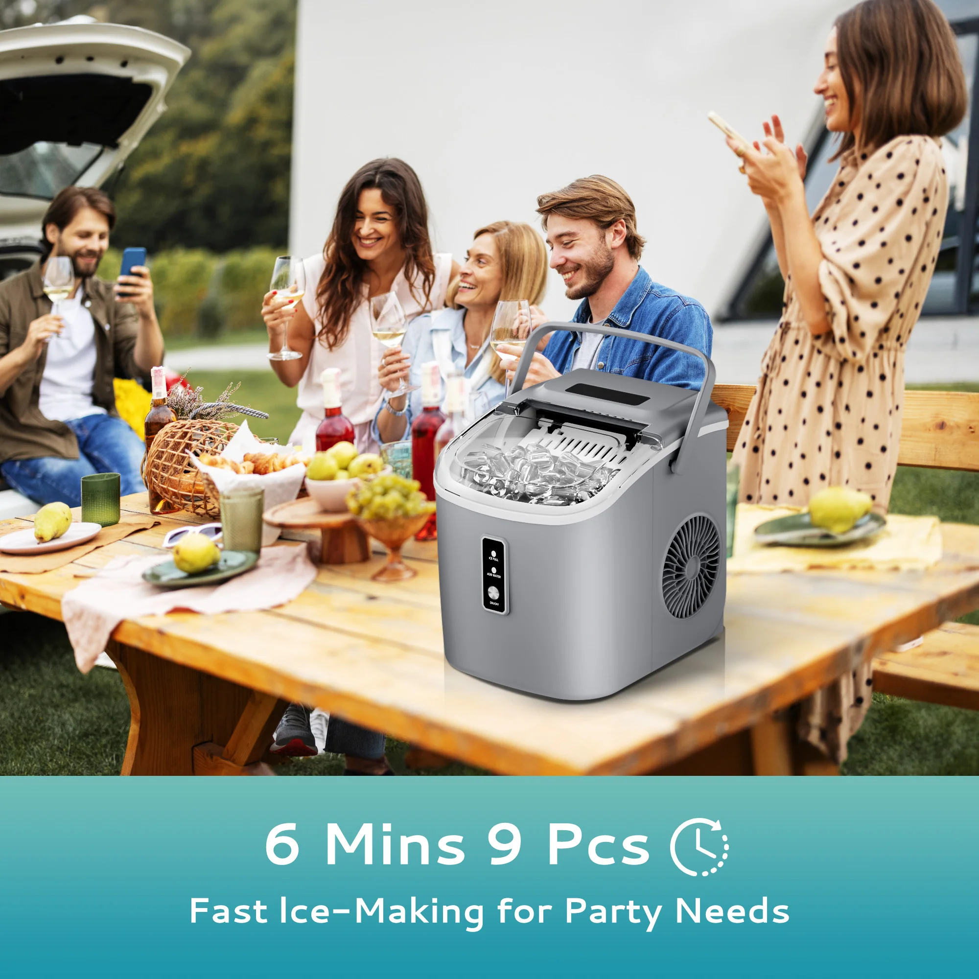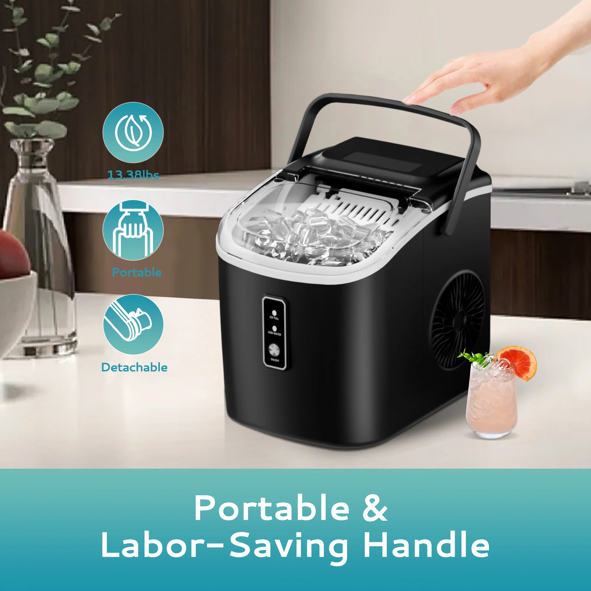 2025 Máquina de hielo portátil EUHOMY Silver Bullet de 12'' con asa – Eficiencia energética