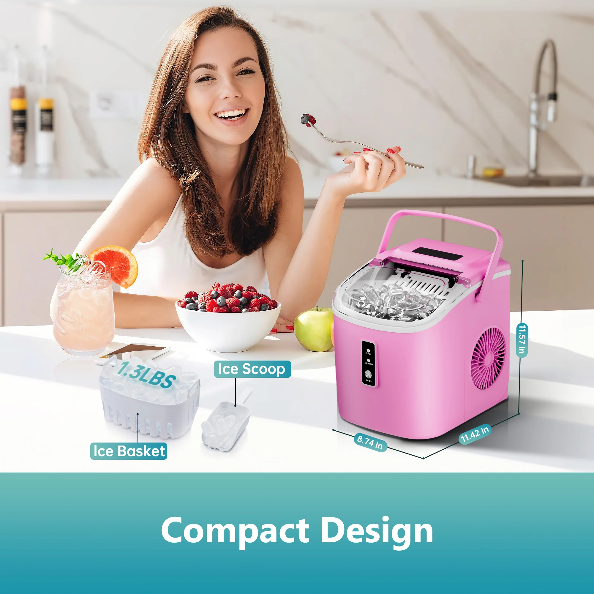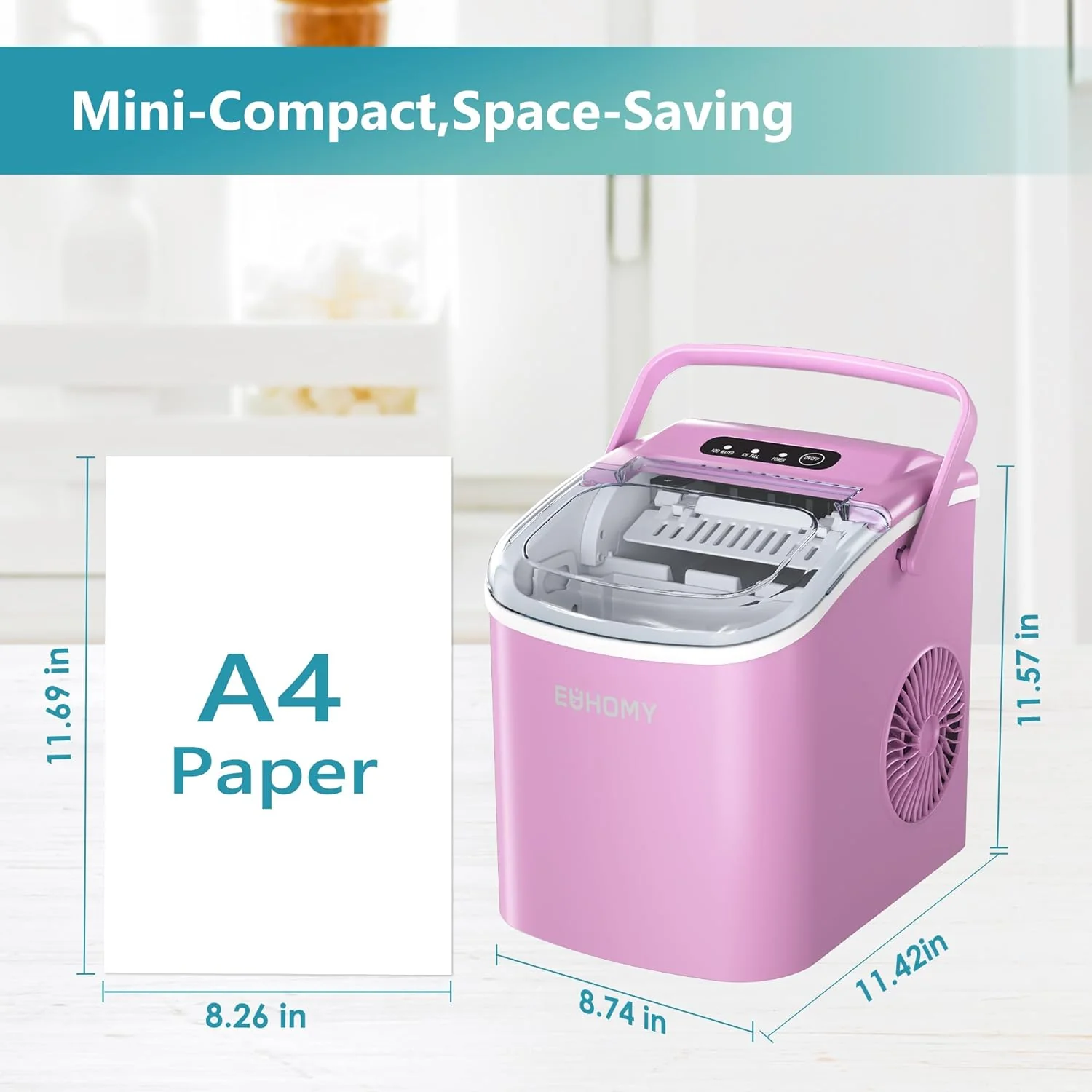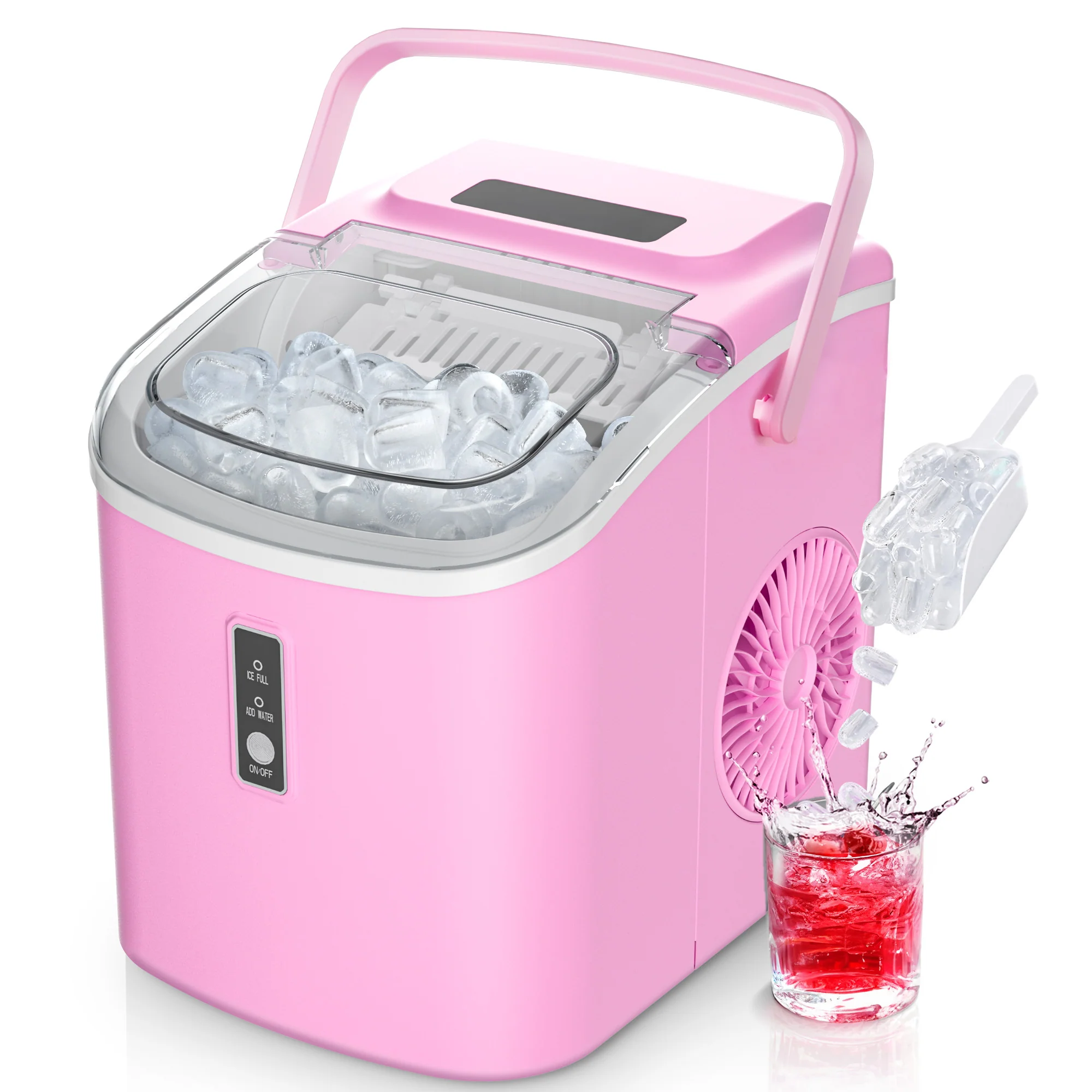 2025 Máquina de hielo portátil EUHOMY 12'' Rosa – Ultra silenciosa con asa