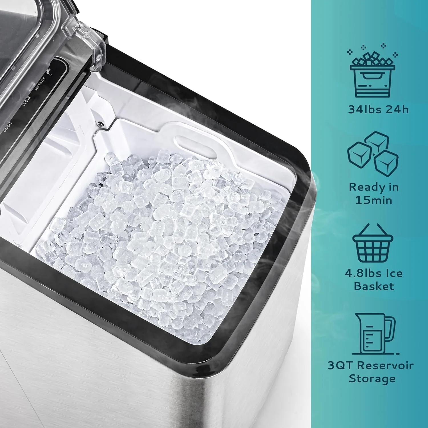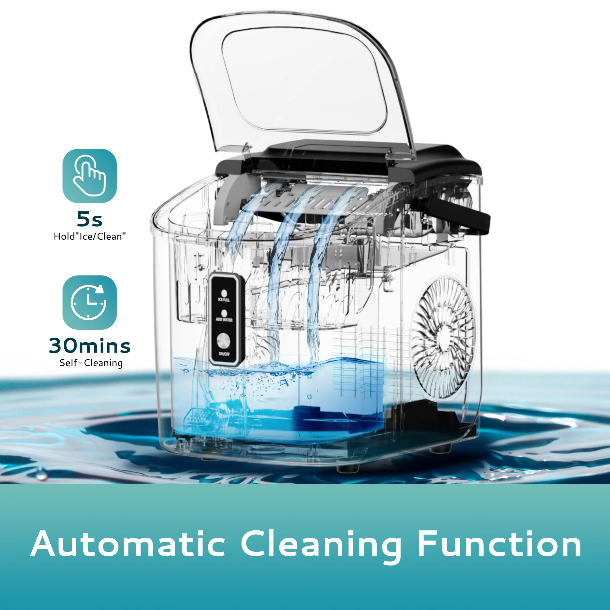 2025 Máquina de hielo portátil EUHOMY con hielo tipo nugget y limpieza automática Sonic