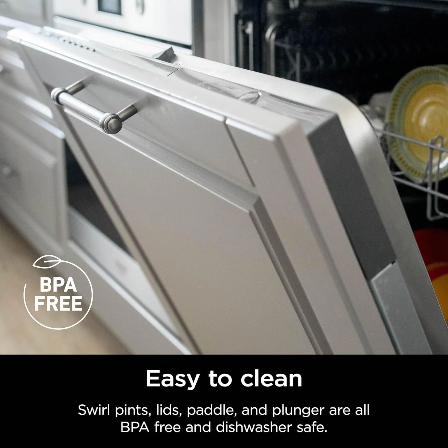 2025 Máquina de helados y crema suave Ninja Swirl by CREAMi, sorbetes, batidos, yogur helado, programa bajo en calorías y más, 13 en 1, con palanca de crema suave, (2) recipientes CREAMi Swirl de 16 oz, para niños y todas las edades, modelo NC701