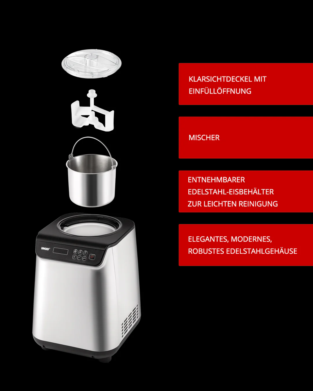2025 Máquina de hielo – Capacidad 1 L, crea fácilmente helado cremoso en casa