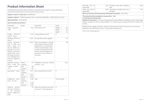 2025 Bauknecht WAM 814 A Lavadora de carga frontal / 8 kg / Clase energética A / Programa corto 45 min / Programa anti-alergias / Programa para lana / Programa corto 30 min / Selector de inicio diferido / AutoClean / Flecken 40°