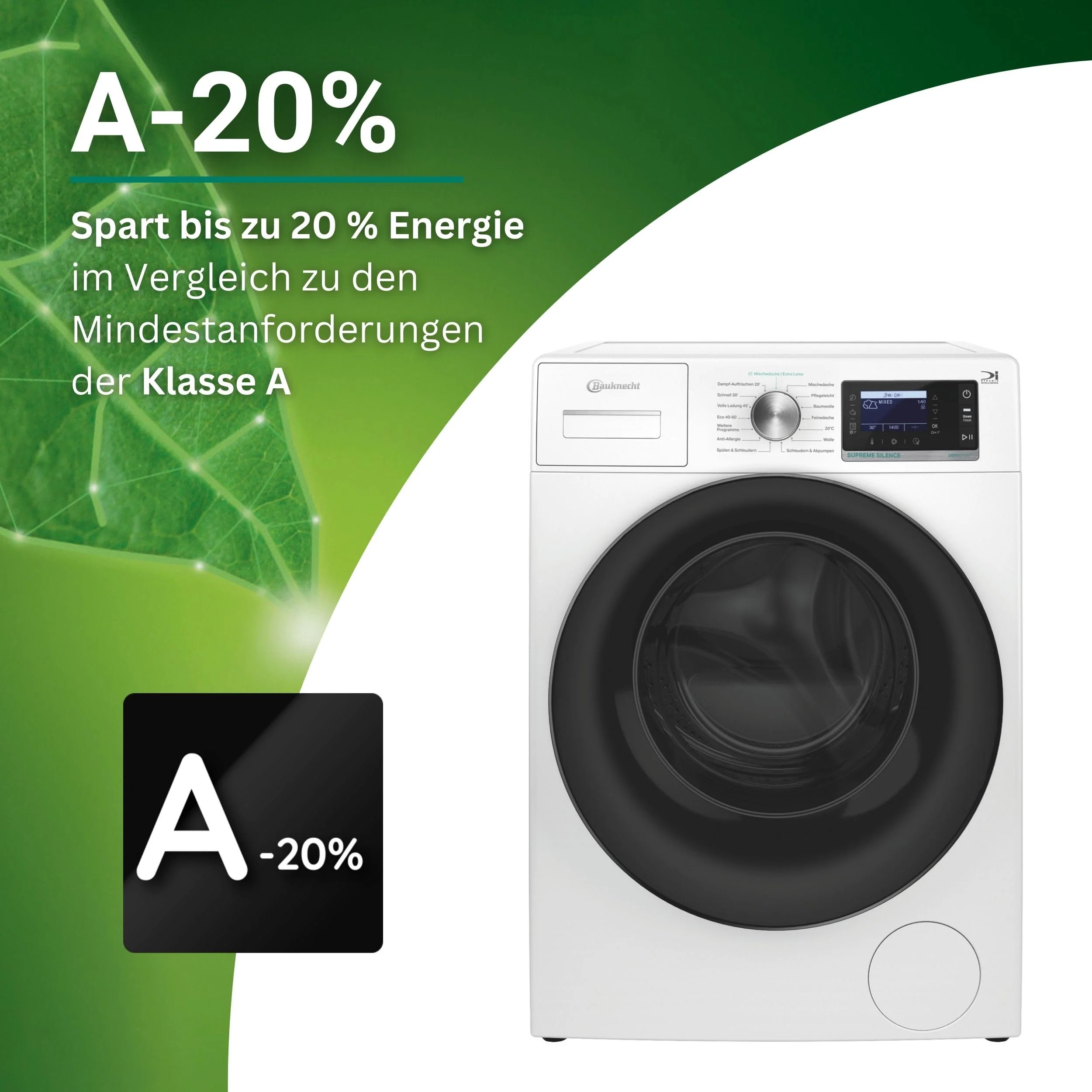 2025 Bauknecht B6R 88 SILENCE DE Lavadora / 8 kg / Carga frontal / Supreme Silence / Clase energética A-20 % / 1400 rpm / Motor ZEN / Muy silenciosa / Steam 3.0 – 3 tecnologías de vapor potentes