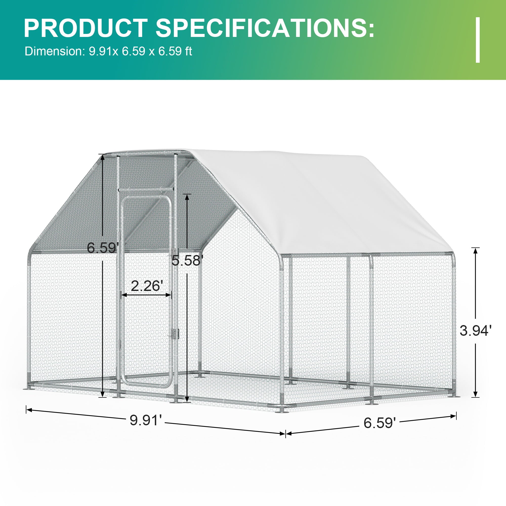 2025 Gran Jaula de Metal para Pollos en Espiral con Cubierta Impermeable y Anti-UV para Exteriores – Capacidad para 16 Aves