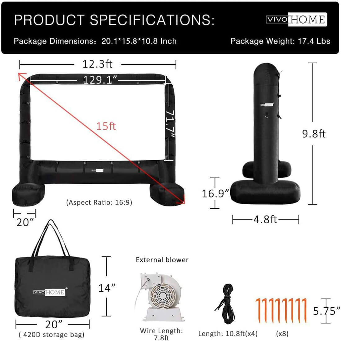 2025 Pantalla Inflable de Cine Gigante de 14-17 Pies para Proyección Frontal y Trasera – Ideal para Exteriores