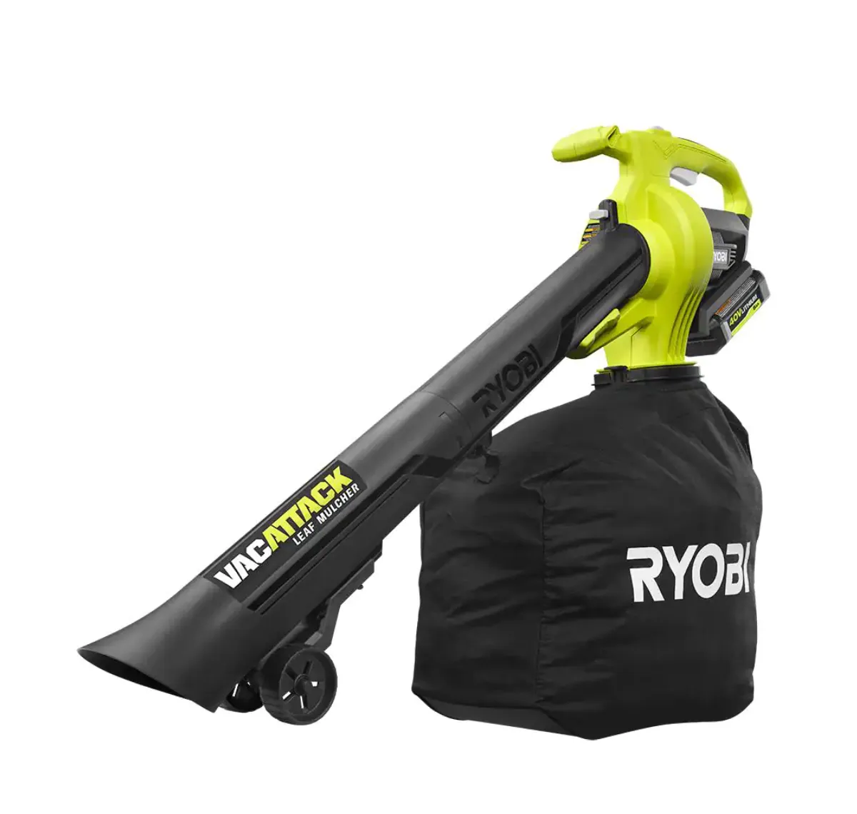 2025 RYOBI RY40451-2B 40V Vac Attack Aspiradora de Hojas Inalámbrica/Mulchadora con (2) Baterías de 5.0 Ah y (1) Cargador