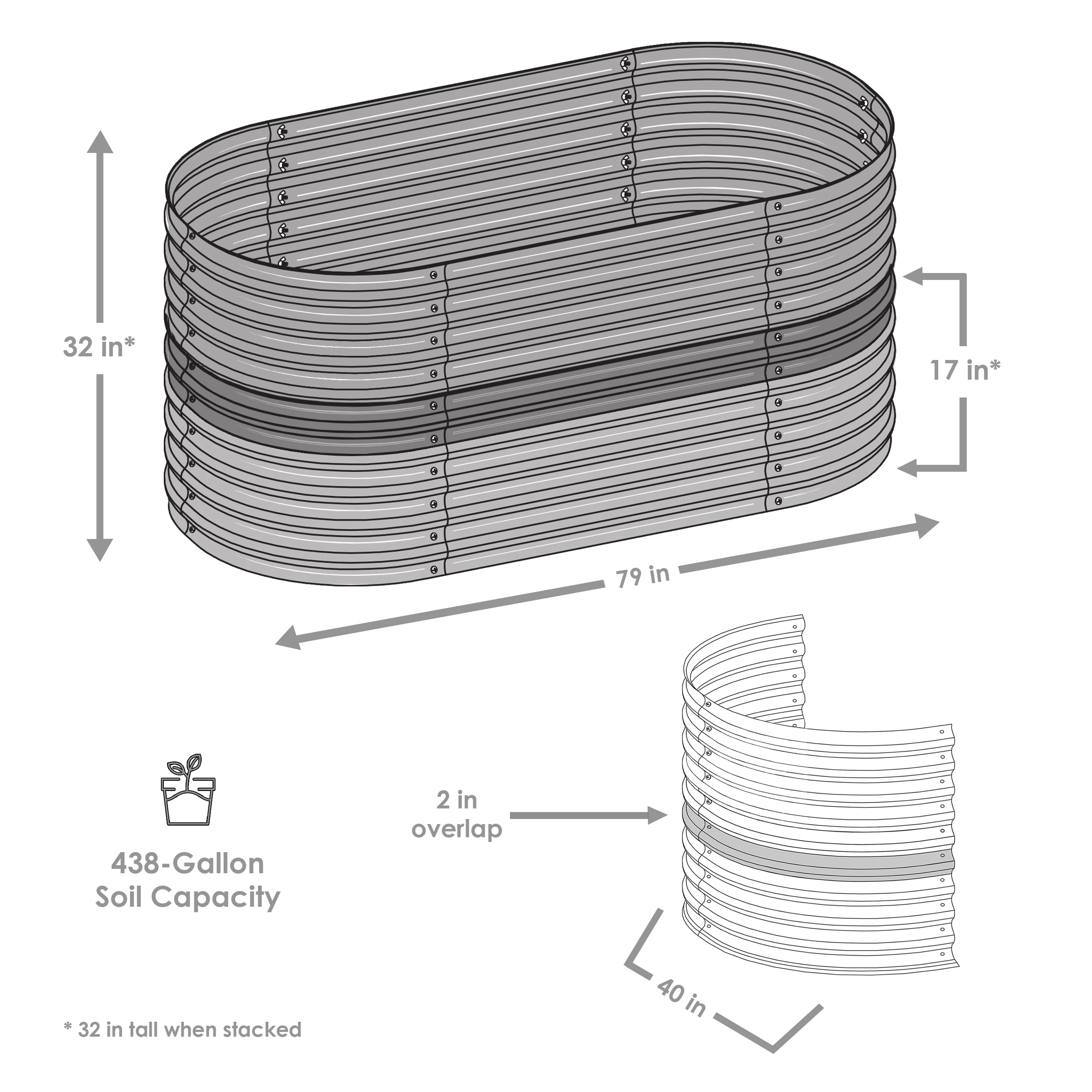 2025 Cama Elevada Apilable de Acero Galvalume Sunnydaze en Forma Ovalada de 200 cm