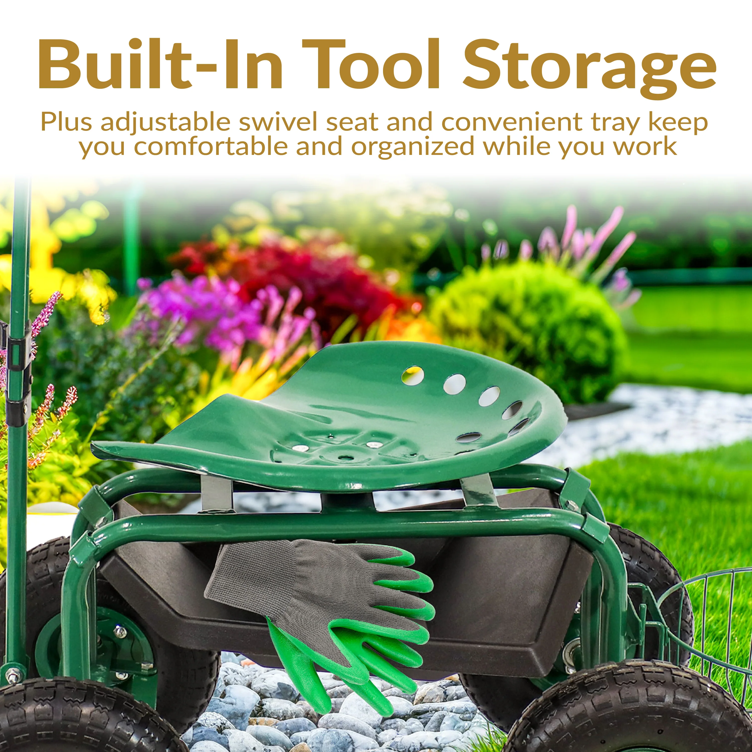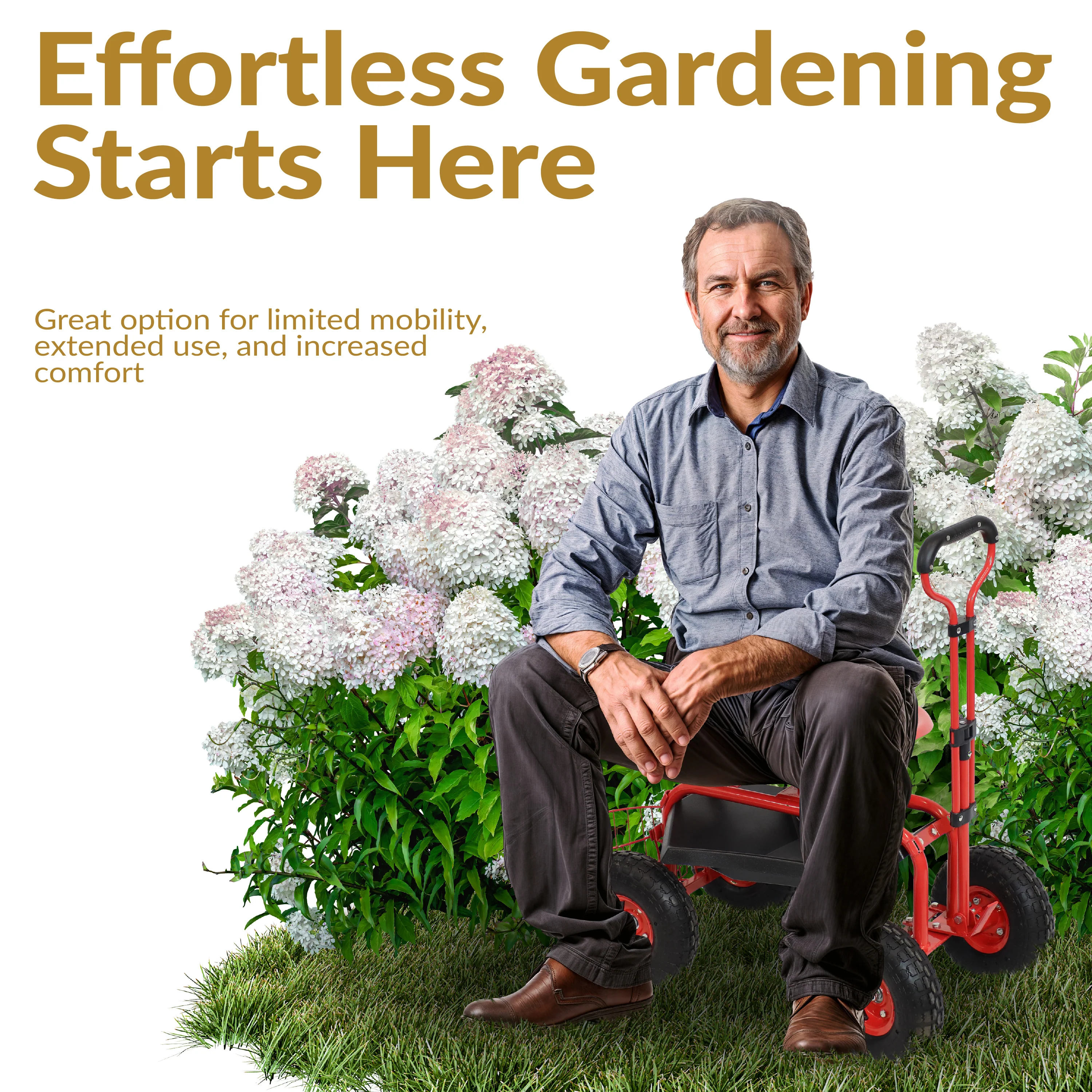 2025 Carrito de Jardín Rodante Sunnydaze con Asiento Giratorio y Manillar de Dirección