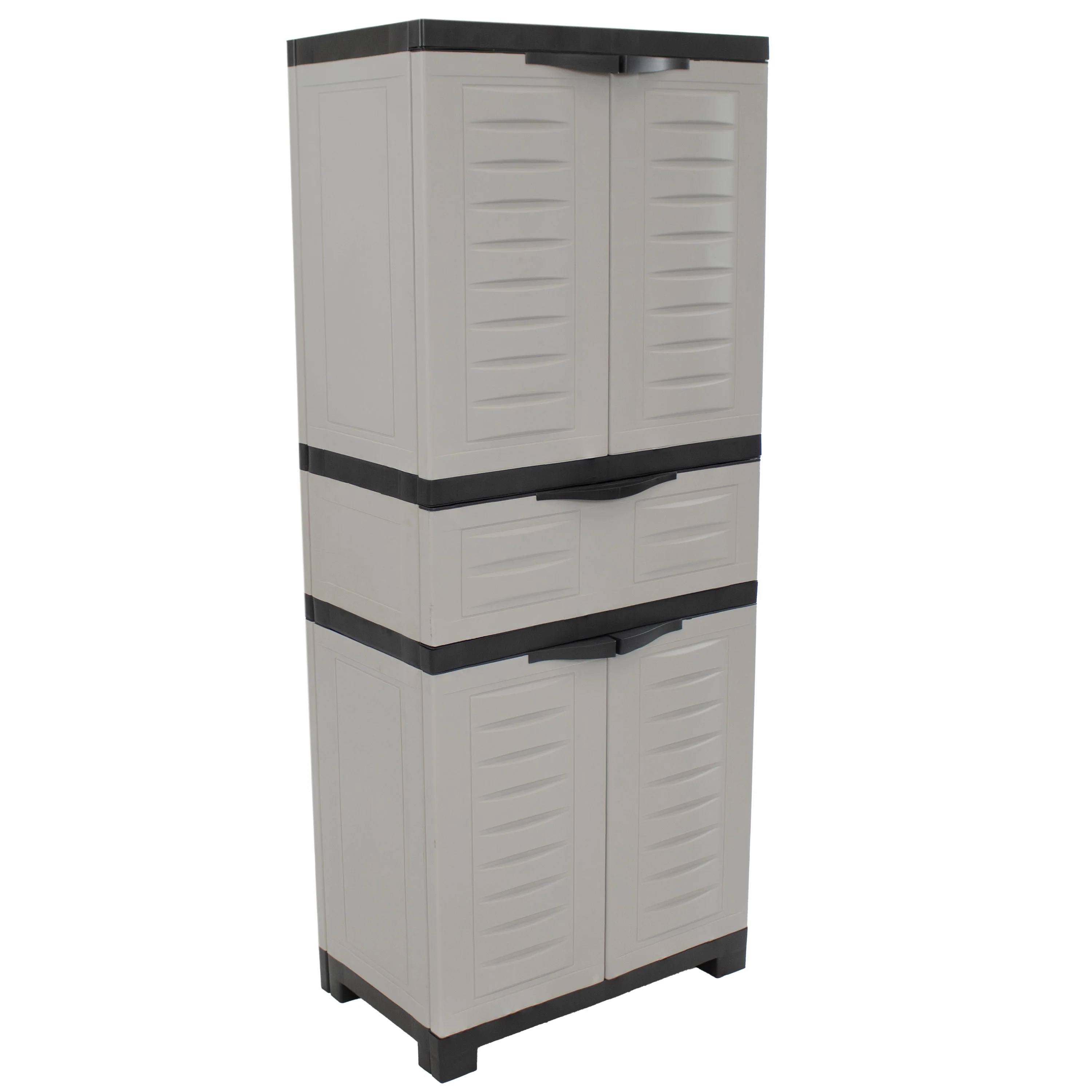 2025 Gabinete de plástico para garaje Sunnydaze con 2 estantes ajustables y 1 cajón