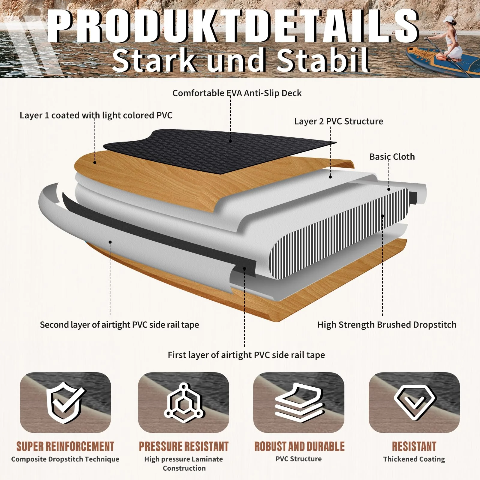 2025 Tabla de paddle surf inflable ALLPICK Premium, SUP con soporte universal para cámara, accesorios completos, remo ajustable, para principiantes y avanzados, capacidad 150kg/180kg, color Naranja Atardecer