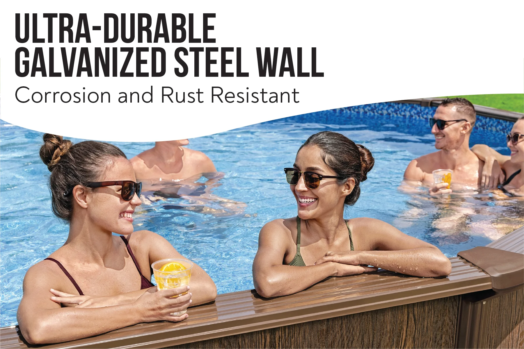 2025 Piscina Elevada Redonda 16ft x 52in con Estampado de Madera, Estructura de Acero Hydrium