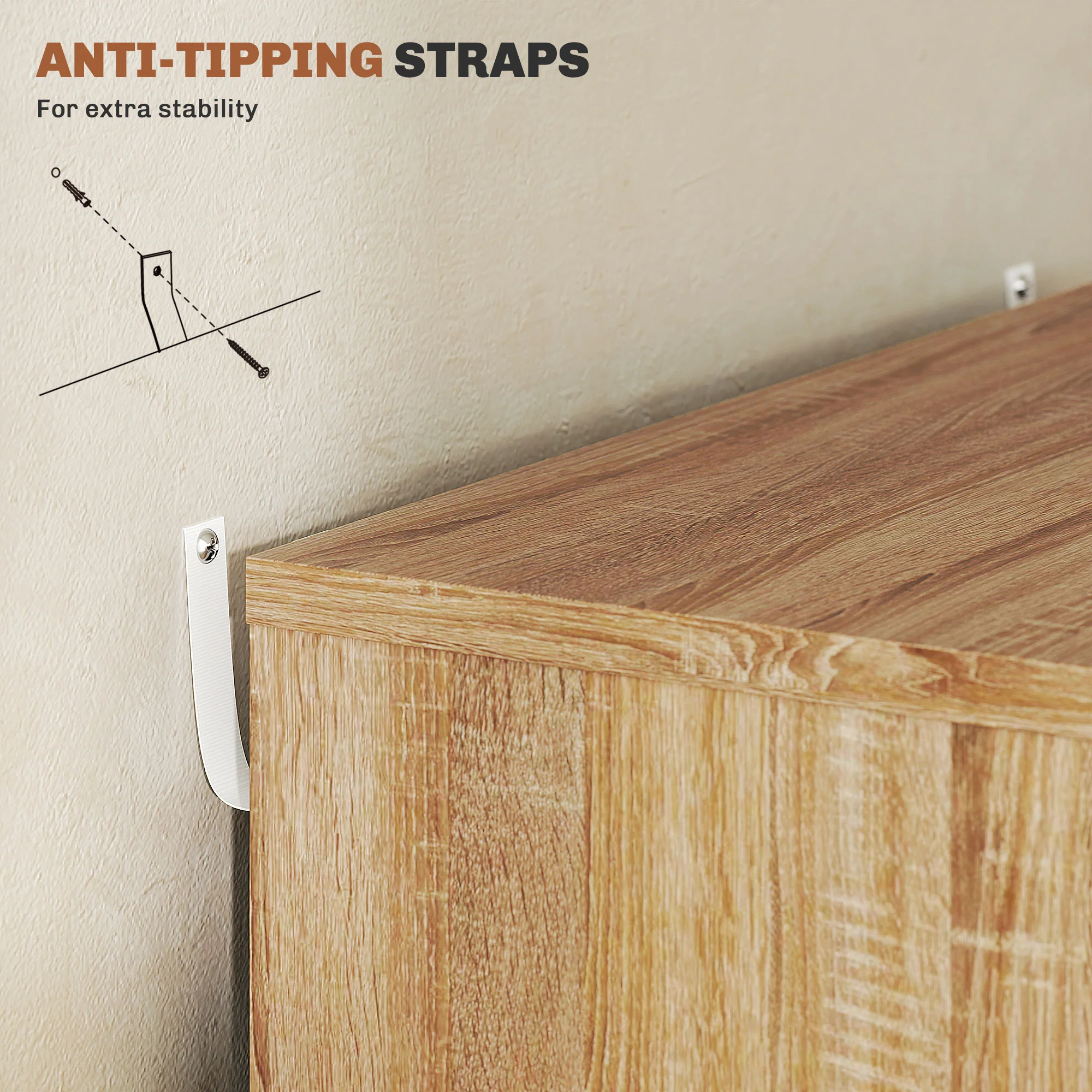 Cajonera Vertical de 5 Cajones, Mueble de Oficina Móvil con Ruedas, Roble