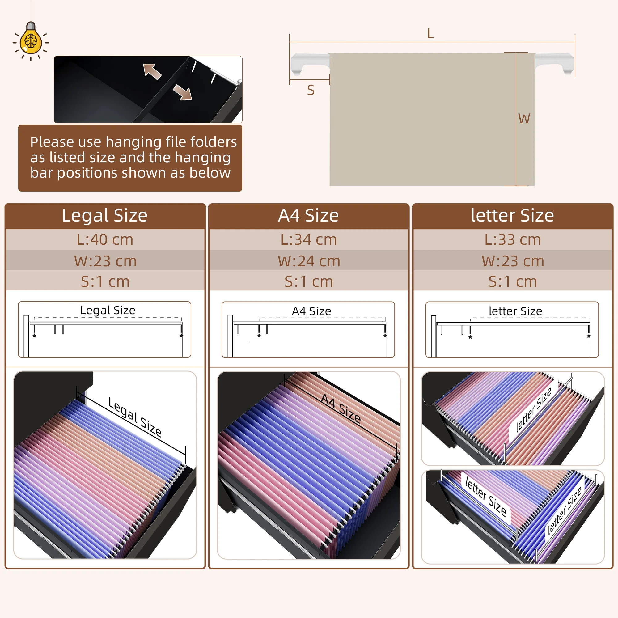 Cajonera Móvil de 3 Cajones, Cajones de Acero con Cerradura para Debajo del Escritorio, 37 x 43,5 x 60 cm, Negro