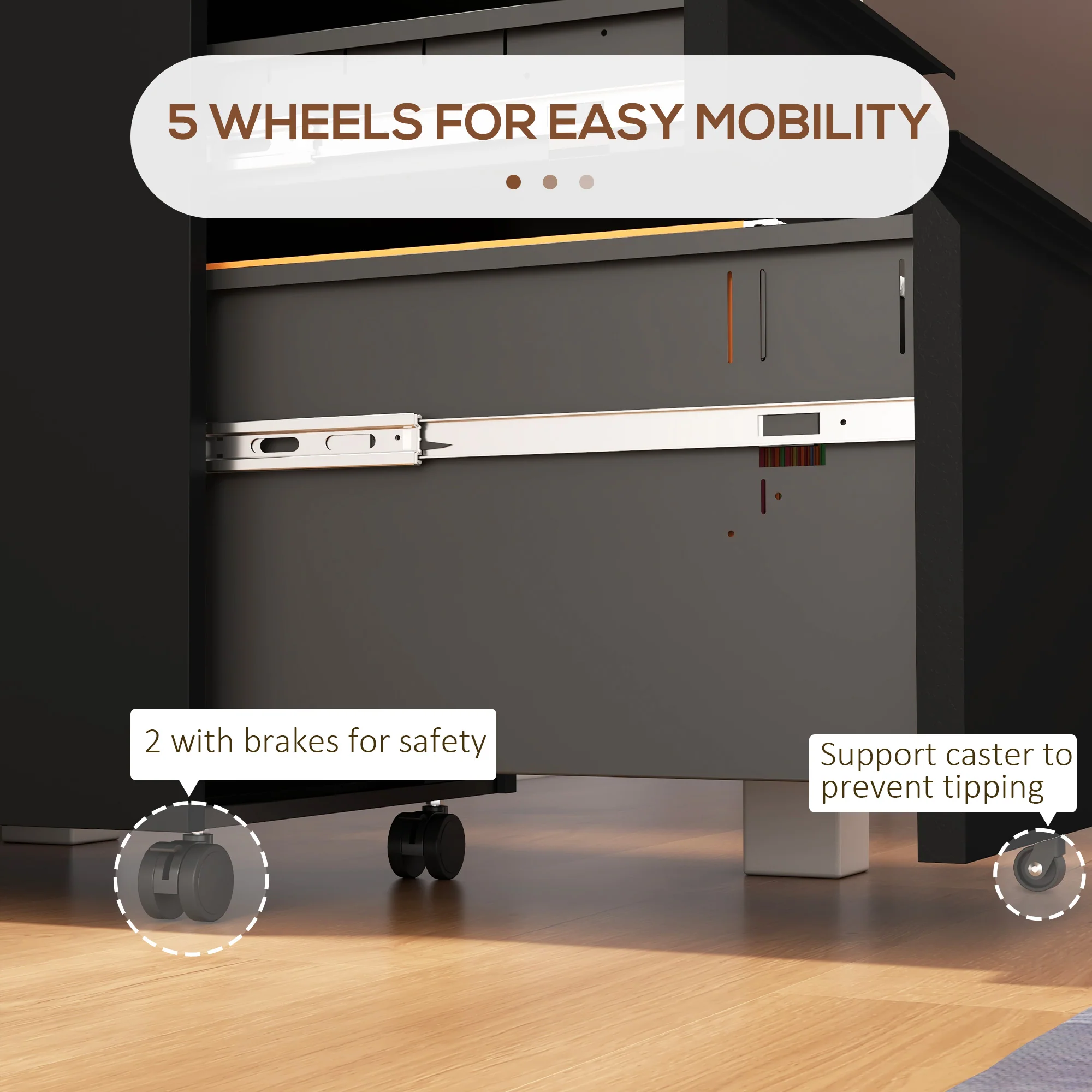 Cajonera Vertical de 7 Cajones, Mueble de Oficina Móvil con Ruedas, Negro