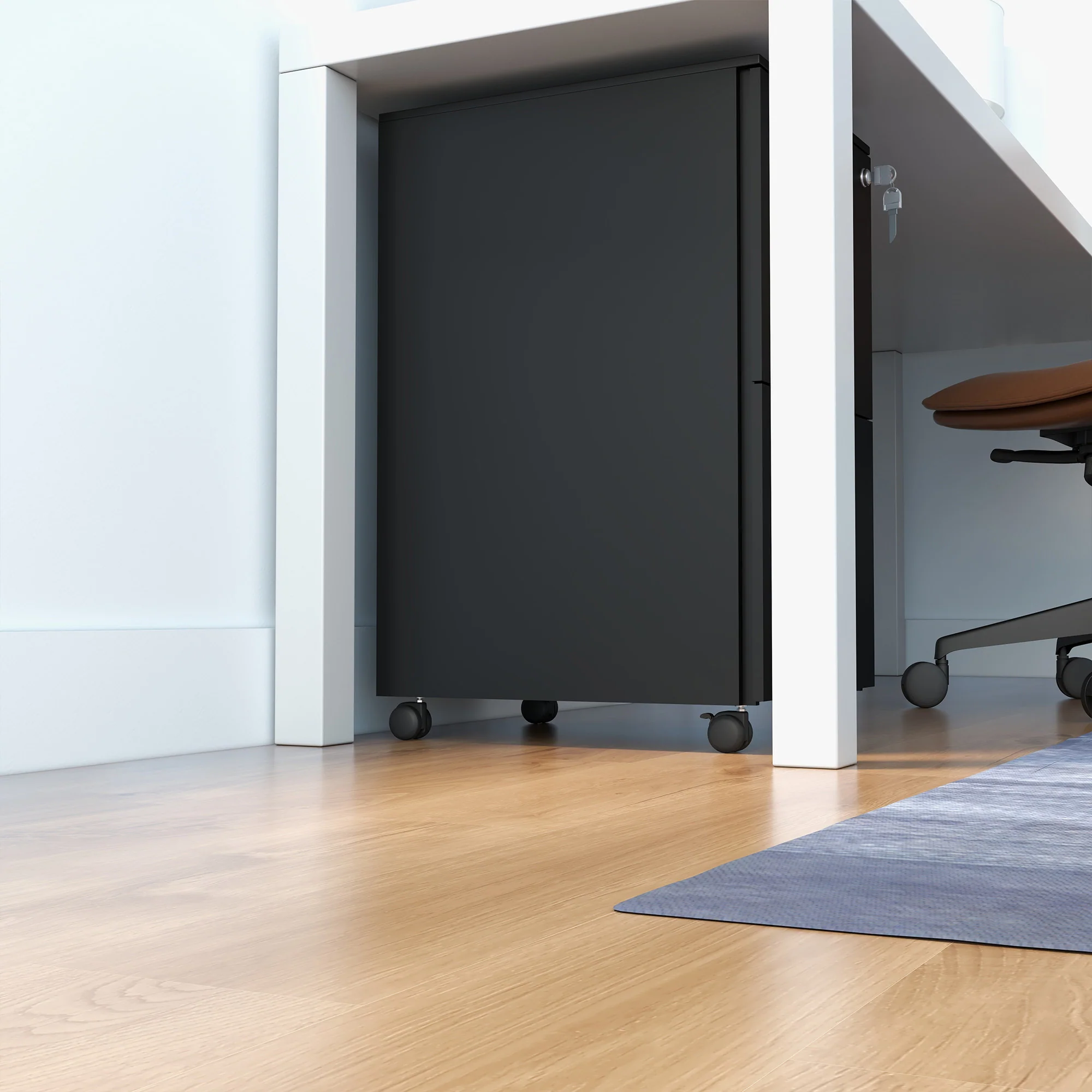 Archivador Móvil de Acero con 2 Cajones y Cerradura, Mueble de Oficina para Debajo del Escritorio, Negro