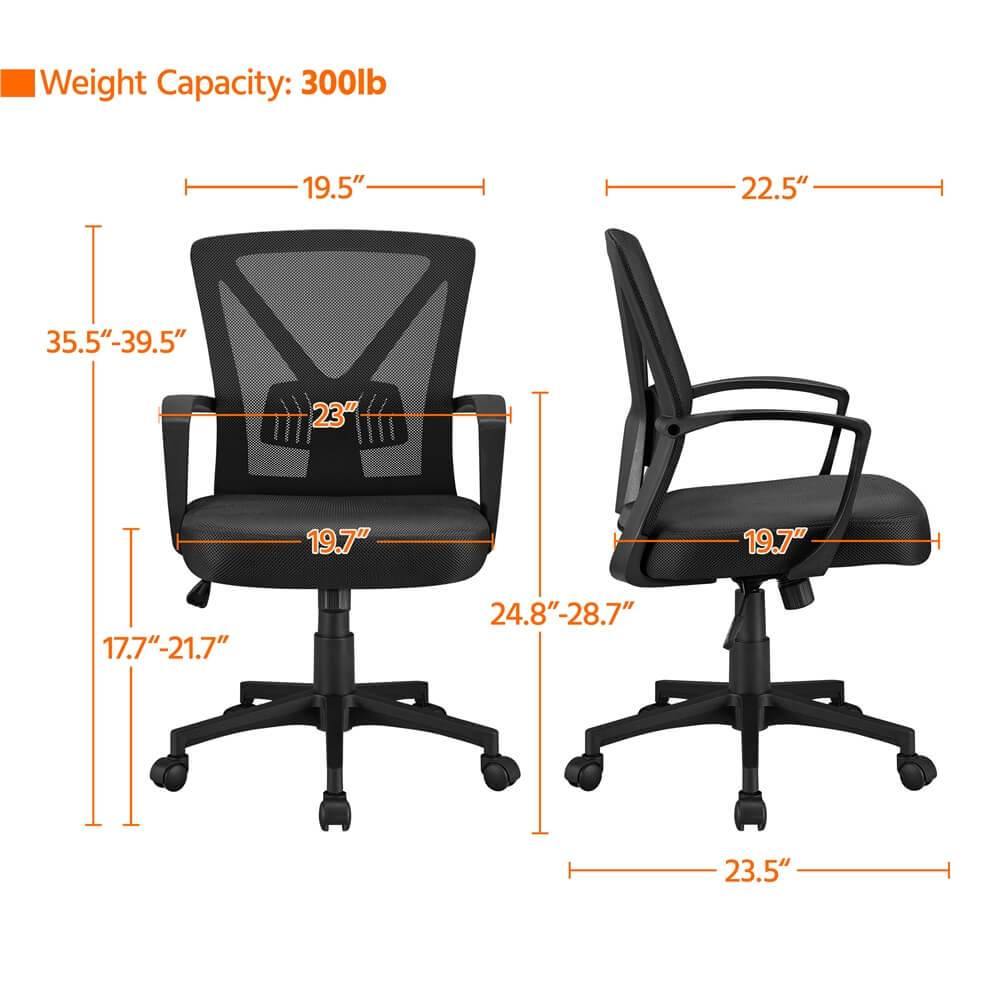 Silla de Oficina Yaheetech con Respaldo Medio – Silla Ergonómica de Malla con Altura Ajustable, Soporte Lumbar y Ruedas Giratorias 360°, Capacidad de Carga 125 kg