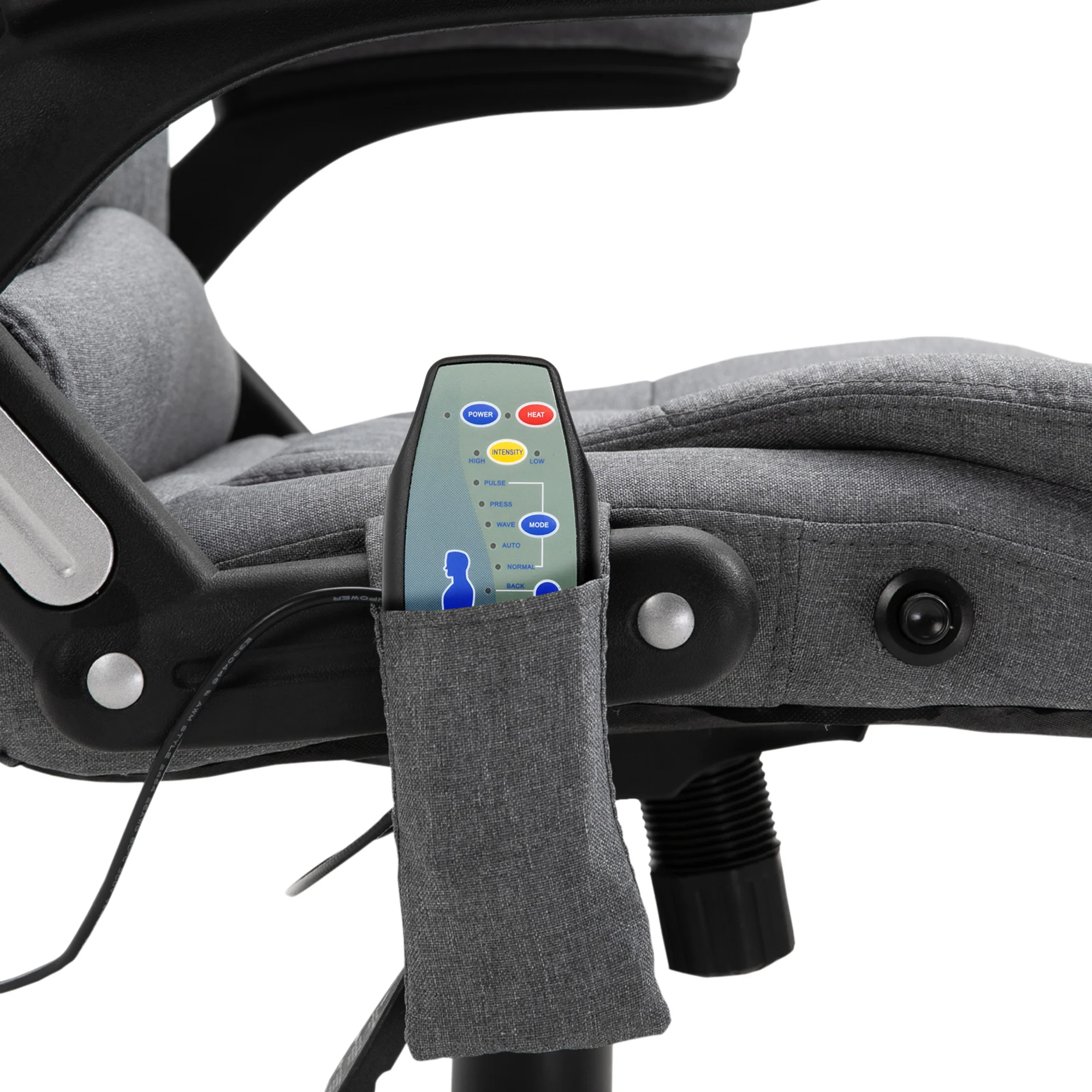 Silla de Oficina Ergonómica con Masaje de 6 Puntos y Calefacción en la Espalda, Tela Tipo Lino, Gris