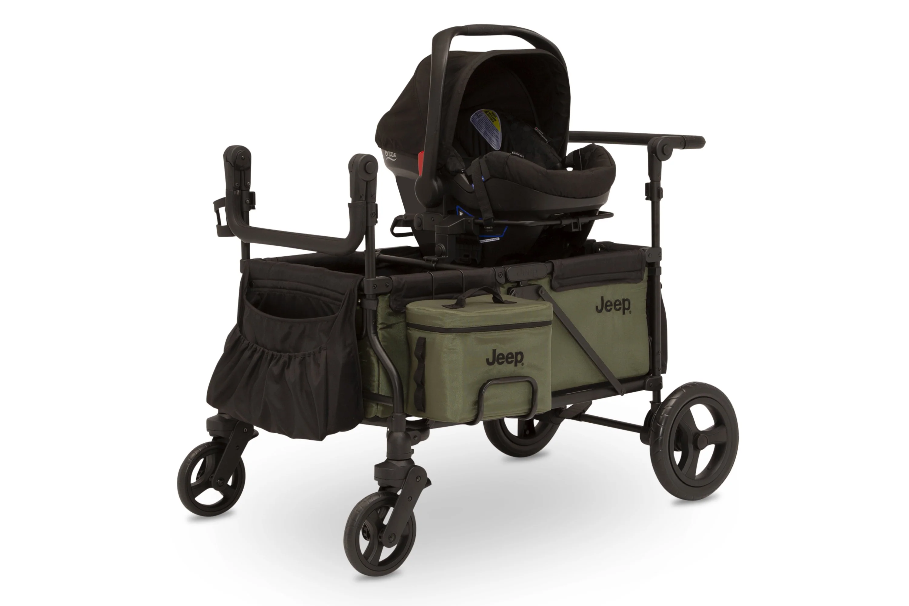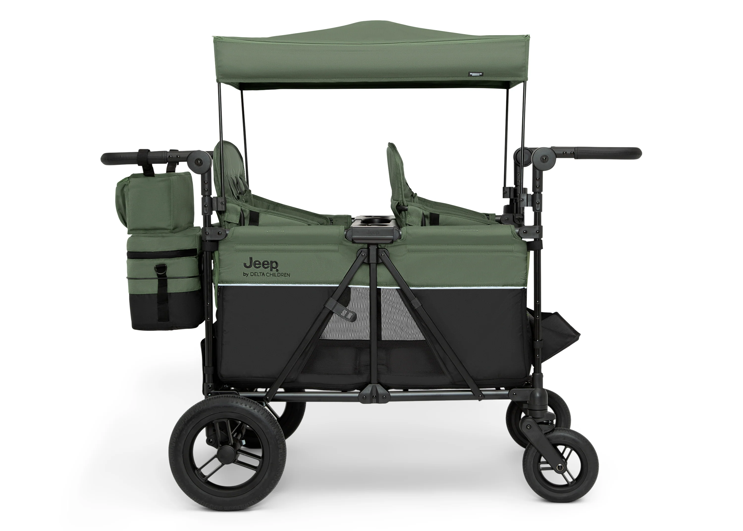 Carrito-Paseador Jeep Wrangler Deluxe – 2 Asientos con Arnés de 5 Puntos, Bolsa Térmica, Capota Anti-UV, Amplio Almacenamiento, Ruedas Todo Terreno Antipinchazos, Manillares Ajustables