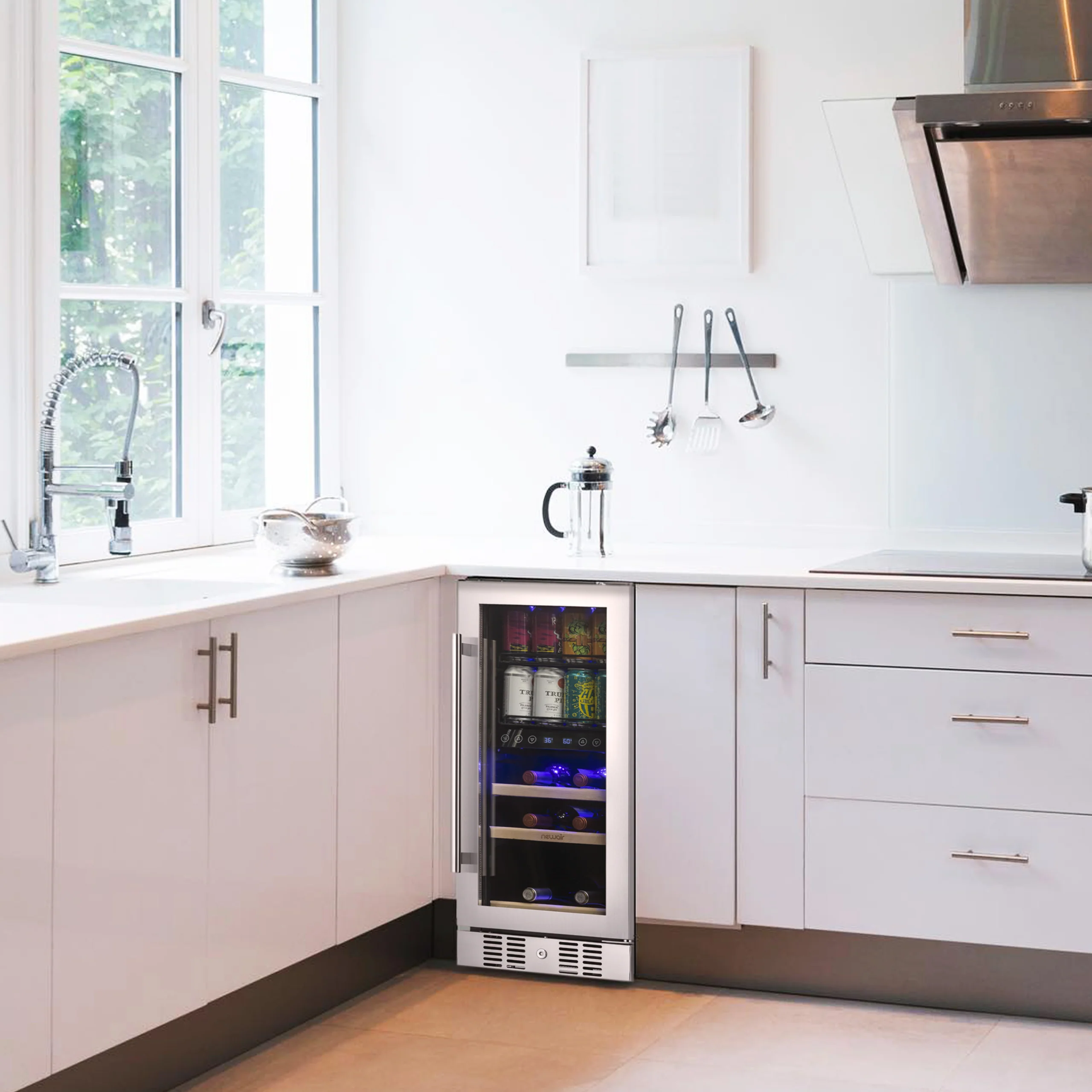 2025 Newair® Refrigerador Empotrable de Doble Zona para Bebidas – 48 Latas y 9 Botellas – 15 Pulgadas