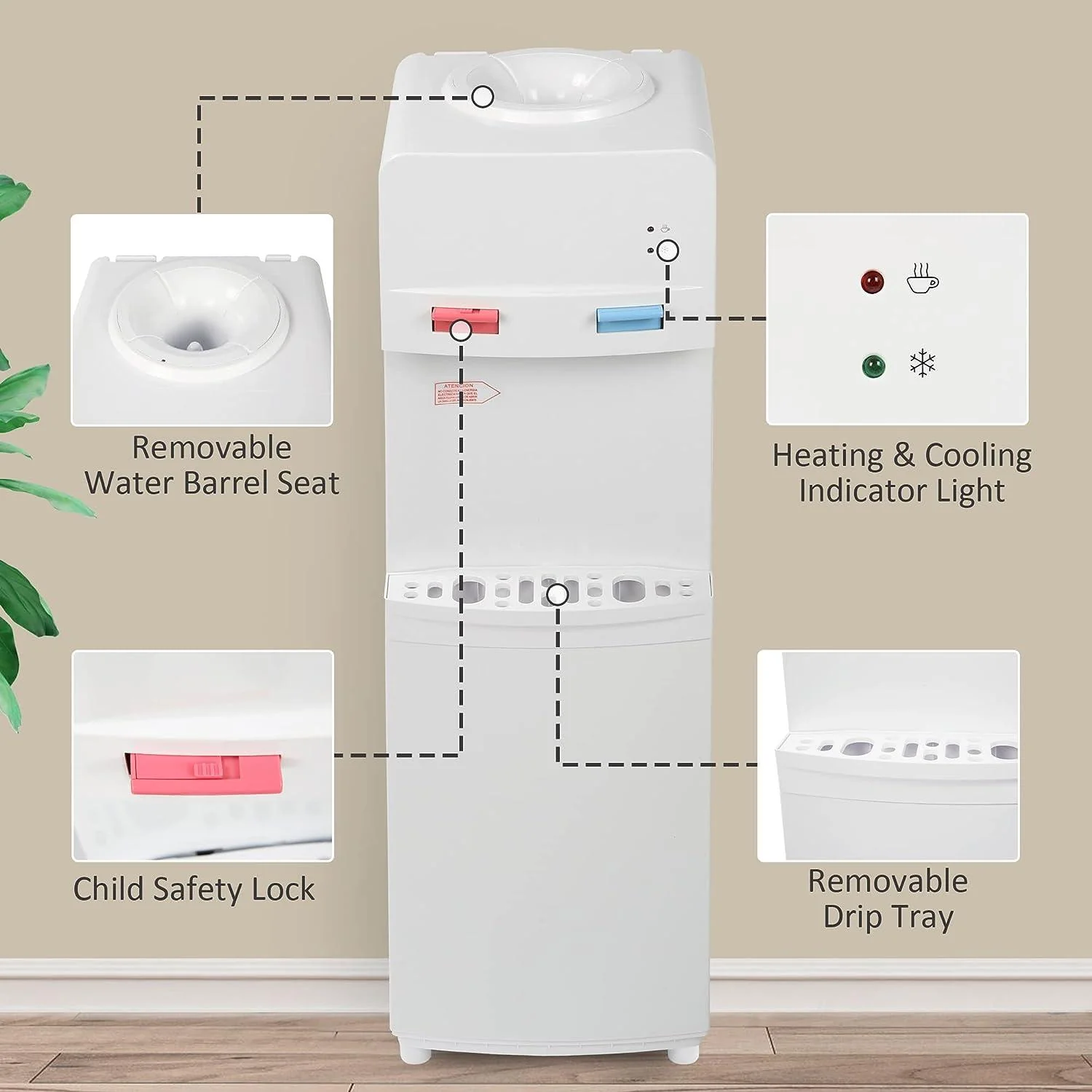 2025 Fuente de agua de carga superior para botellas de 3–5 galones – Agua caliente y fría con seguridad infantil – Blanca