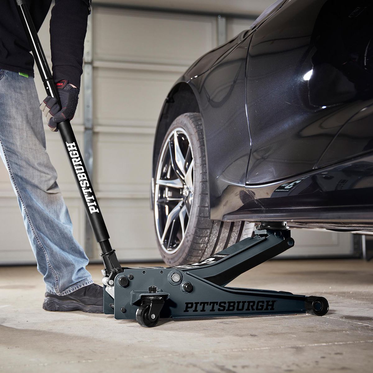 2025 PITTSBURGH Gato hidráulico de piso de perfil bajo de 3 toneladas con bomba RAPID PUMP, color gris pizarra
