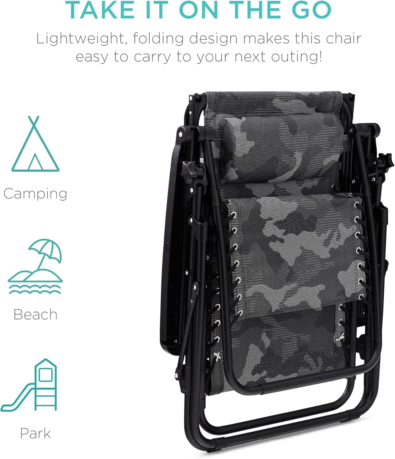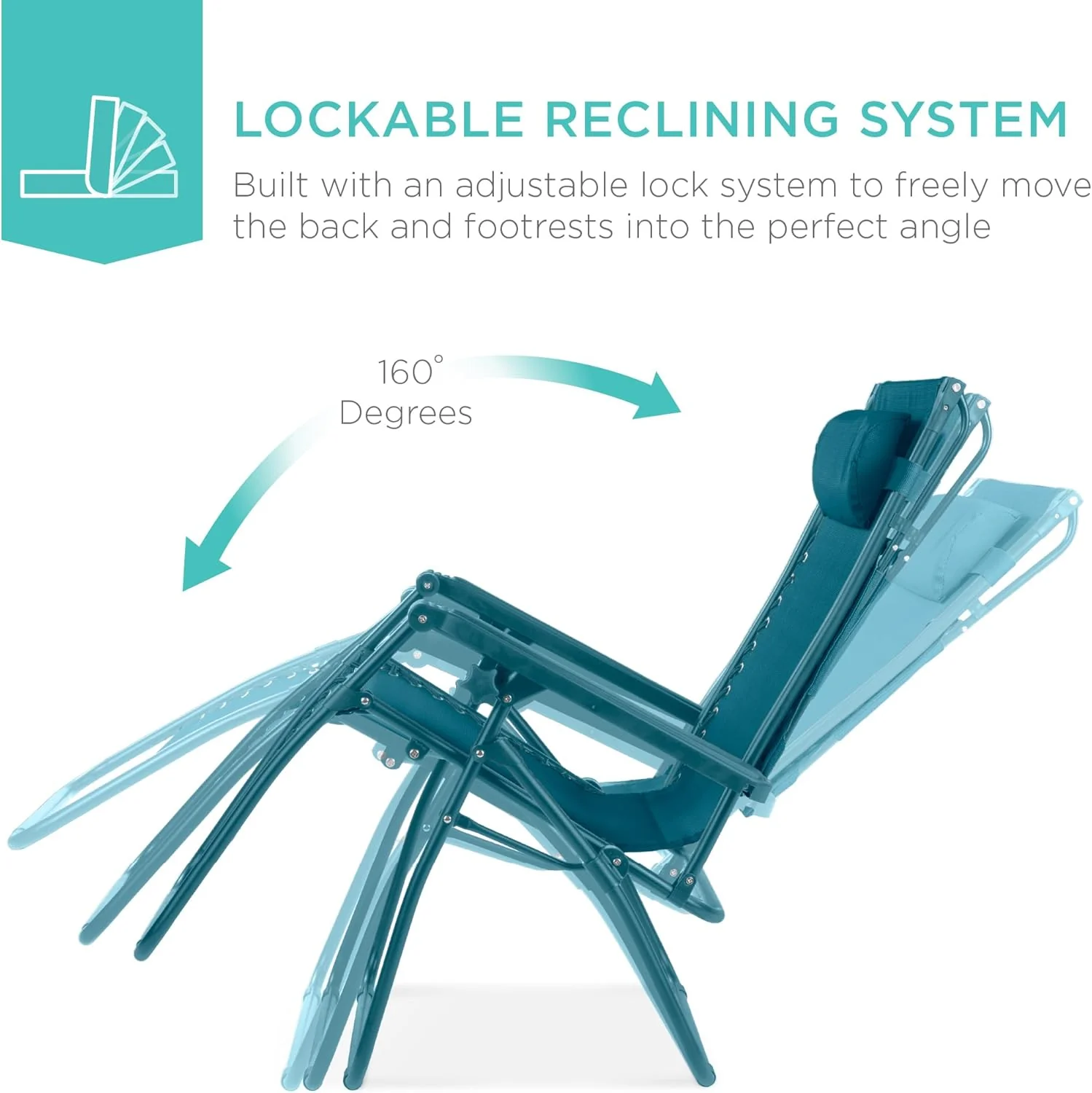 Best Choice Products – Silla Reclinable de Patio con Gravedad Cero, Ajustable y Plegable para Exteriores con Dosel, Almohada Cervical y Bandeja Lateral, Textileno – Azul Pavo Real